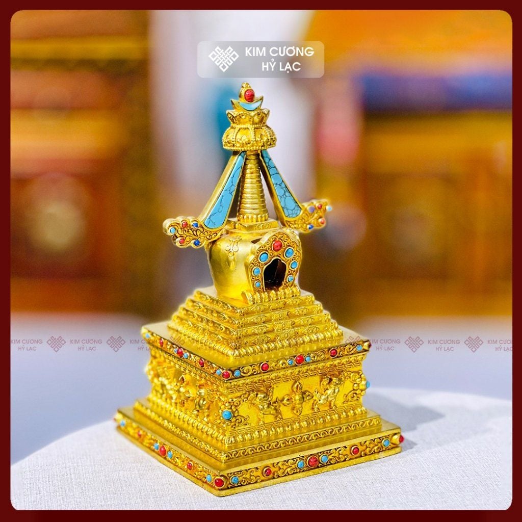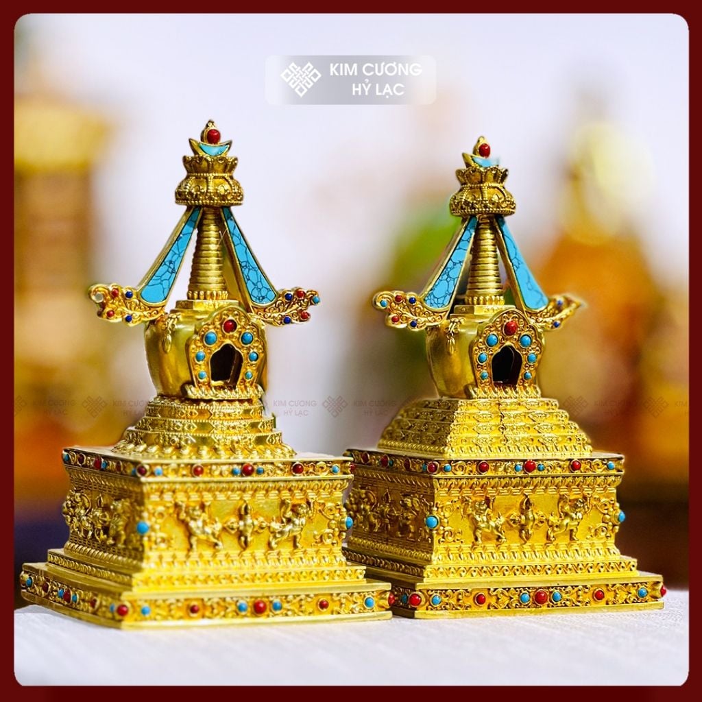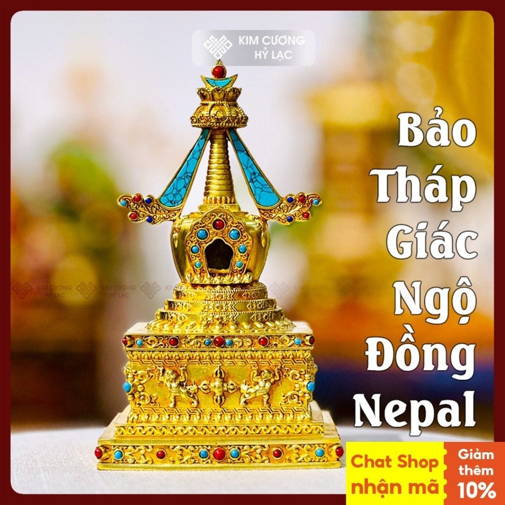 Bảo Tháp Giác Ngộ Đồng Nepal Cao Cấp [Kim Cương Hỷ Lạc] Chạm Khắc Tinh Xảo, Binh An, May Mắn,Lợi Lạc