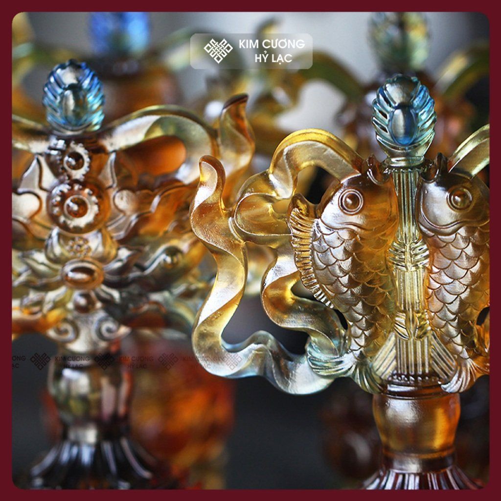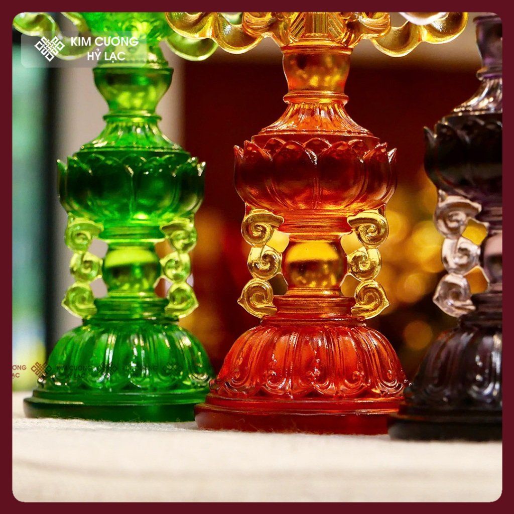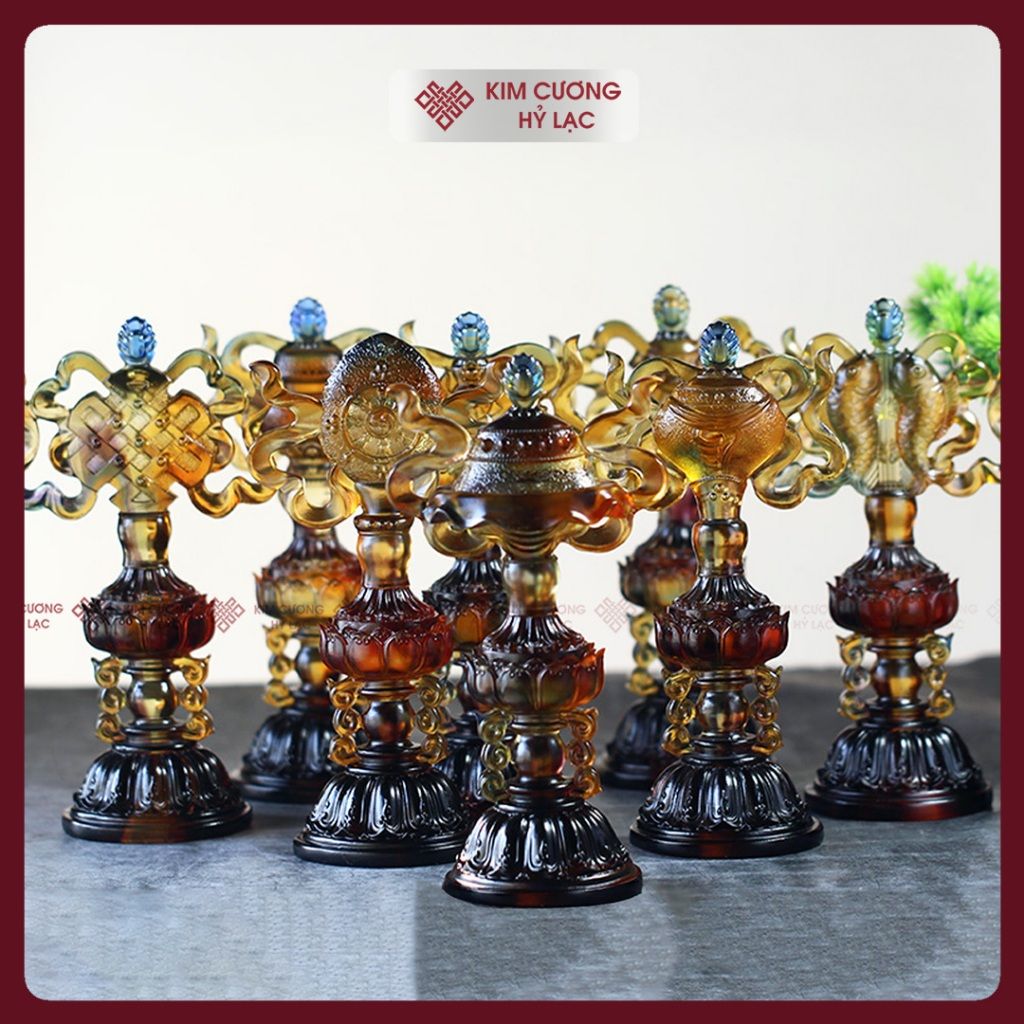 Bát Bảo Cát Tường -Bát Cát Tường Lưu Ly Cao Cấp [Kim Cương Hỷ Lạc] Bộ Bát Cát Tường Cúng Dường 13cm