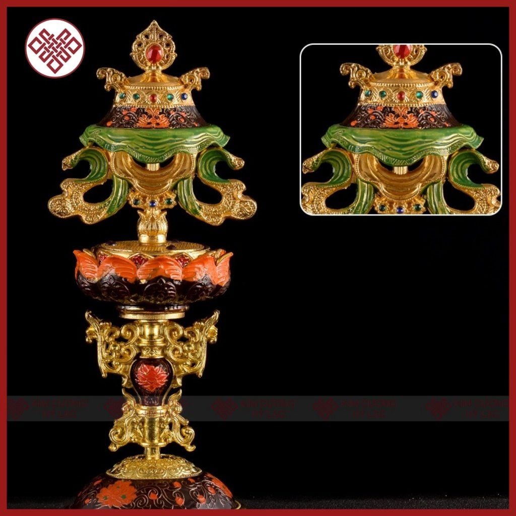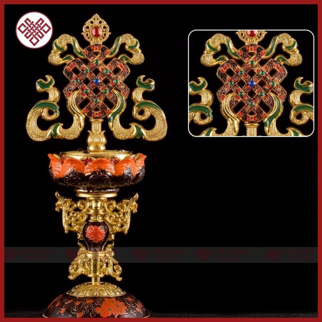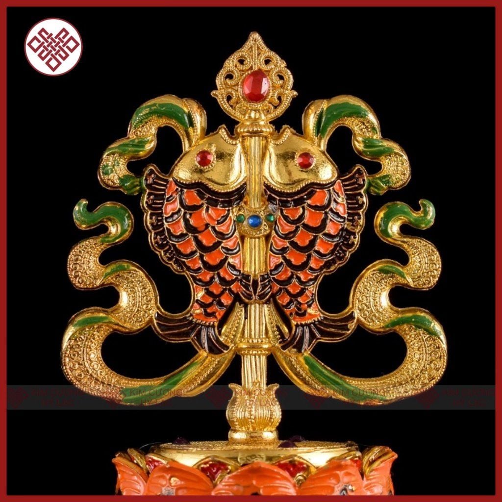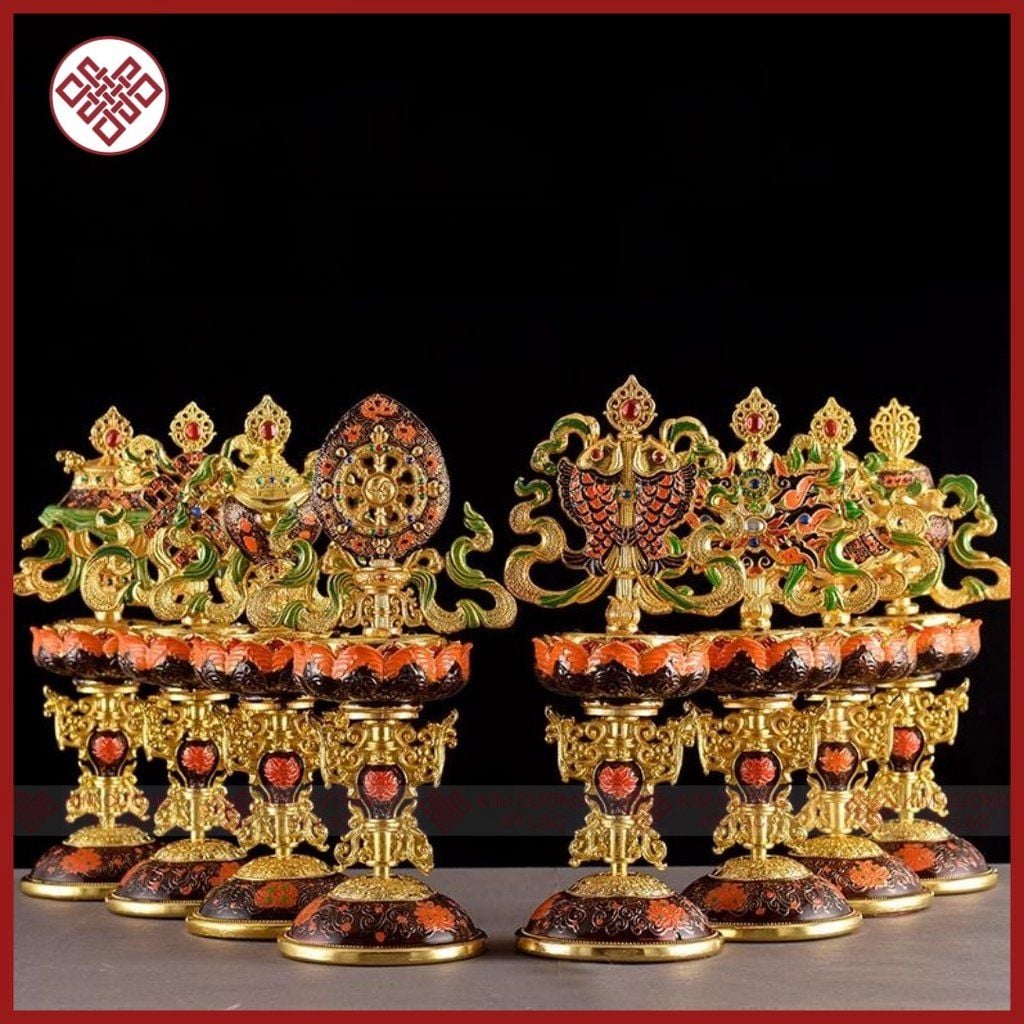 Bát Cát Tường Mật Tông [Kim Cương Hỷ Lạc] Đồng Vẽ Màu Bộ 8 Cái 18Cm