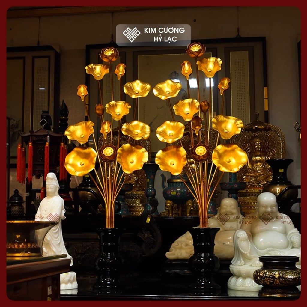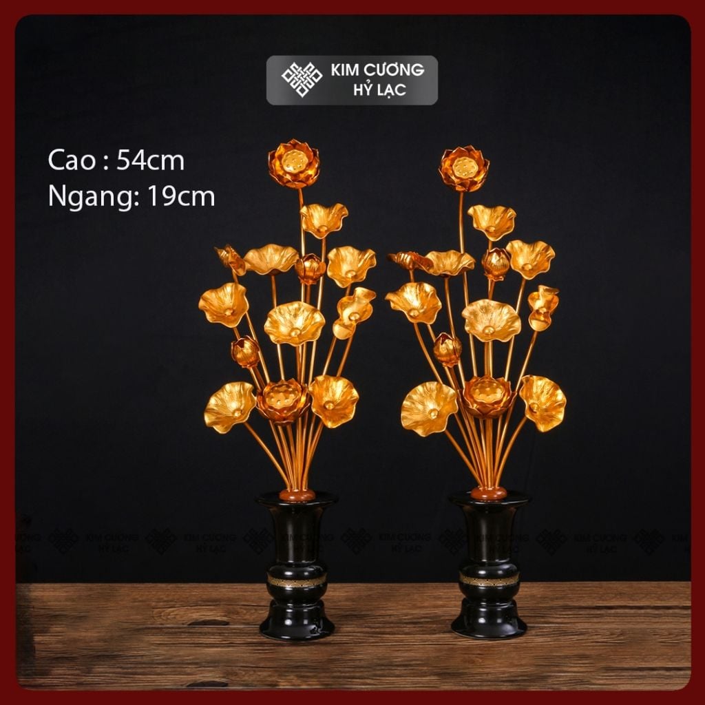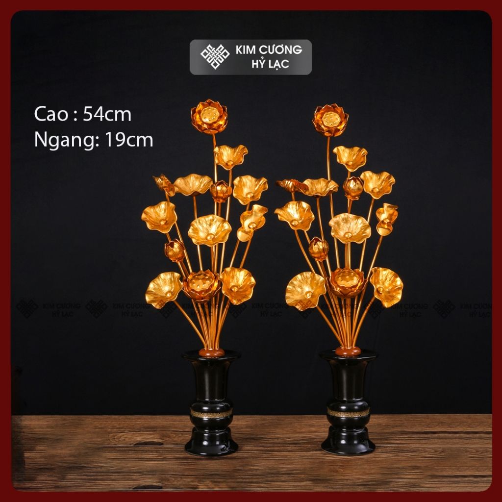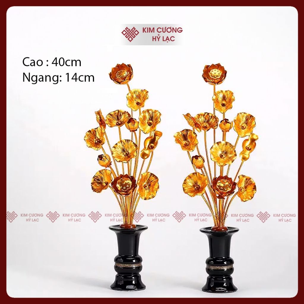 Bình Hoa Sen Hợp Kim Trang Trí Ban Thờ [Kim Cương Hỷ Lạc] Cặp Bình Sen Hợp Kim Nhiều Kích Thước