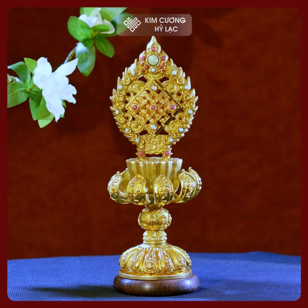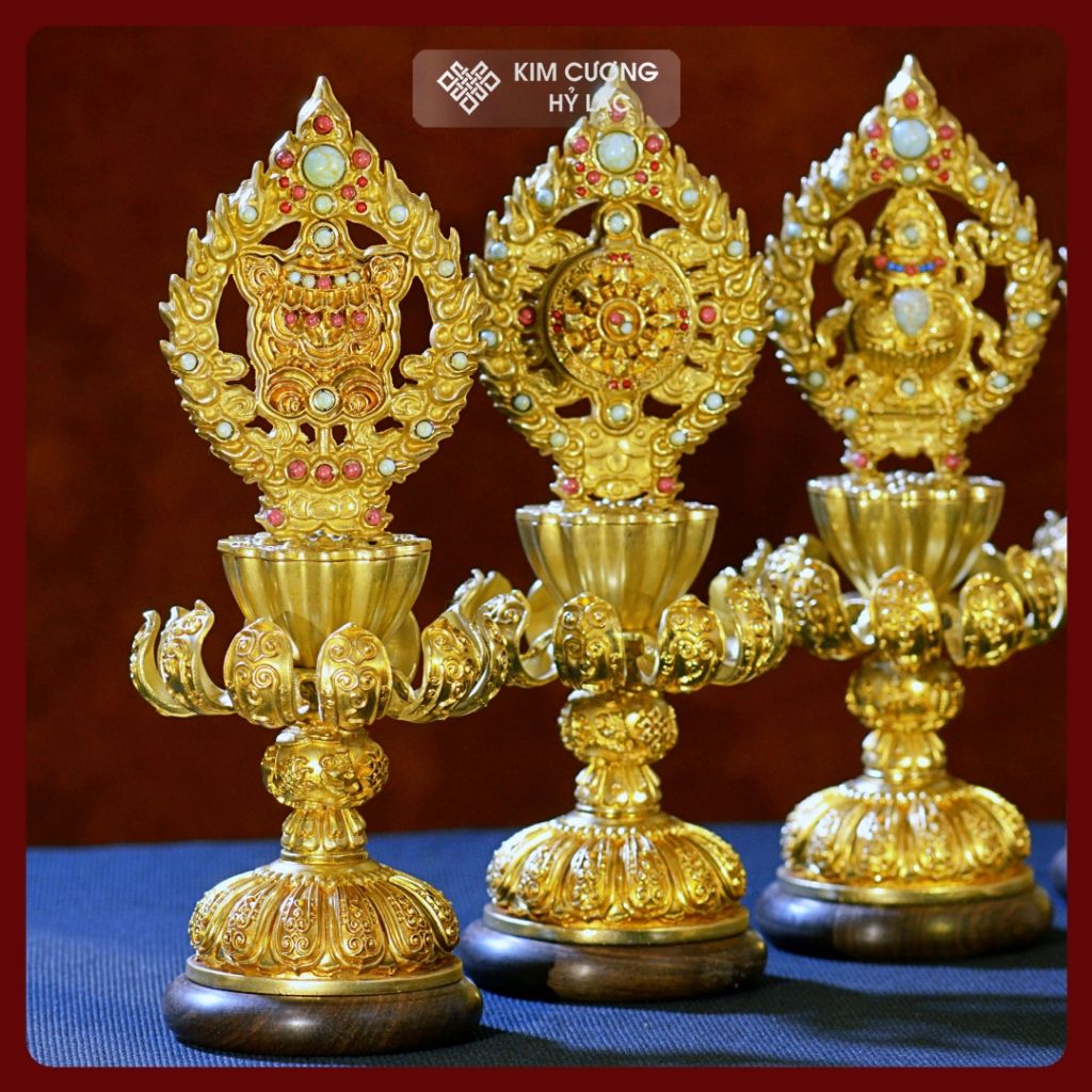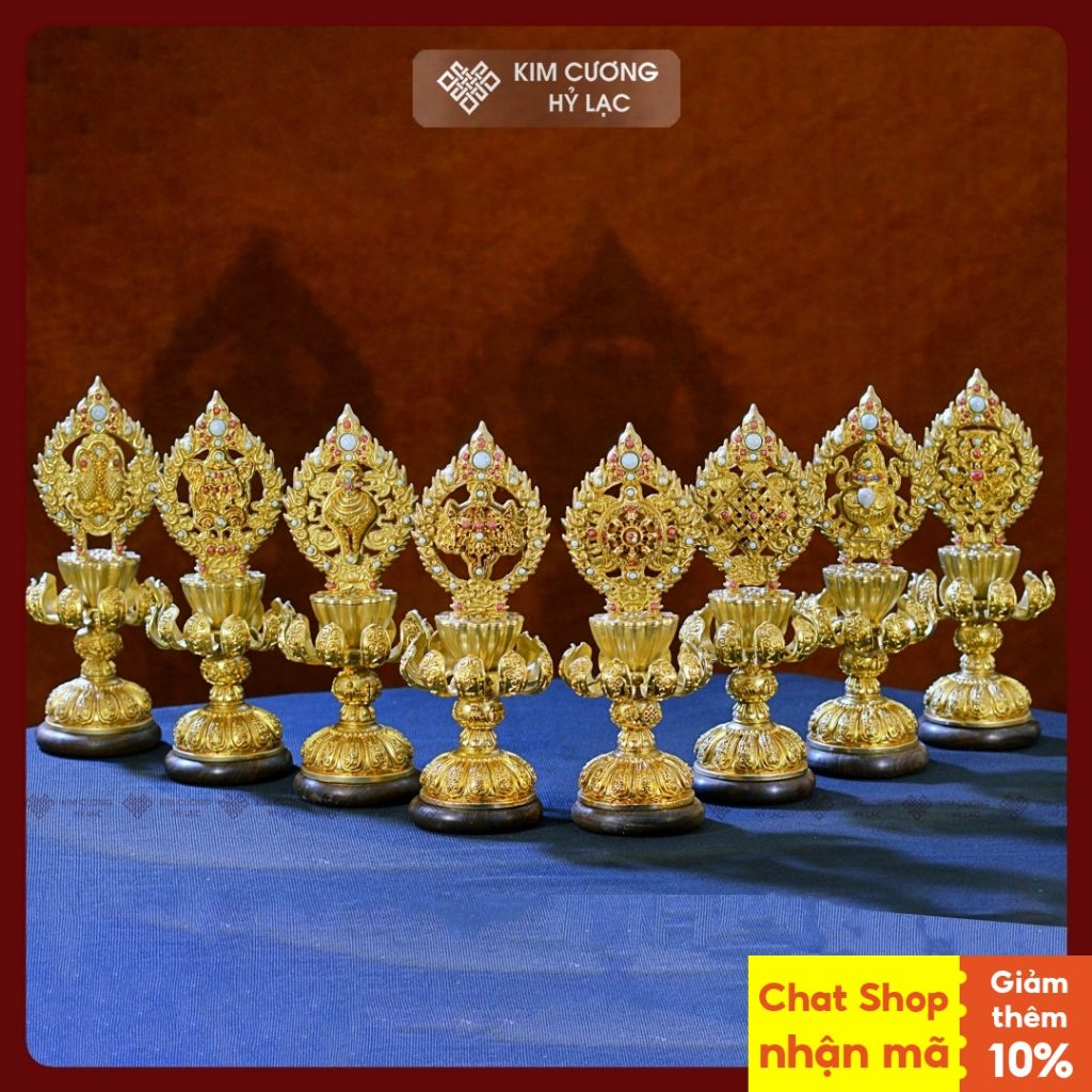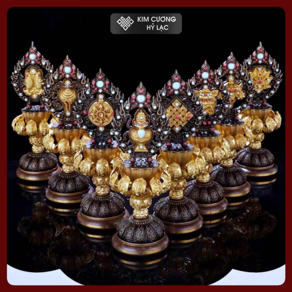 Bộ Bát Cát Tường Cúng Dường Chư Phật [Kim Cương Hỷ Lạc] Đồng Mạ Vàng Cao Cấp 24Cm