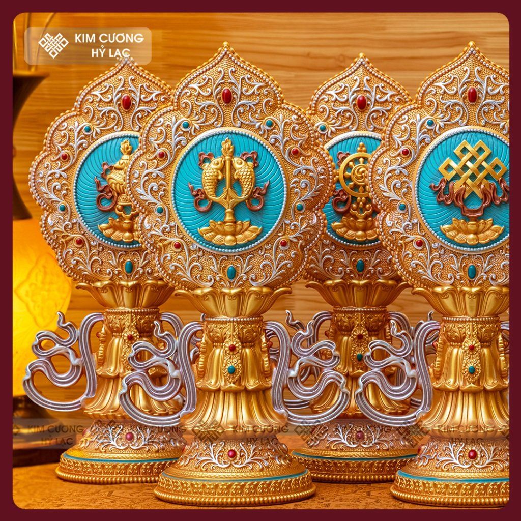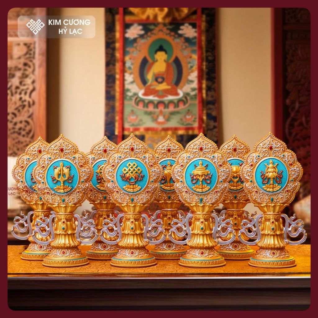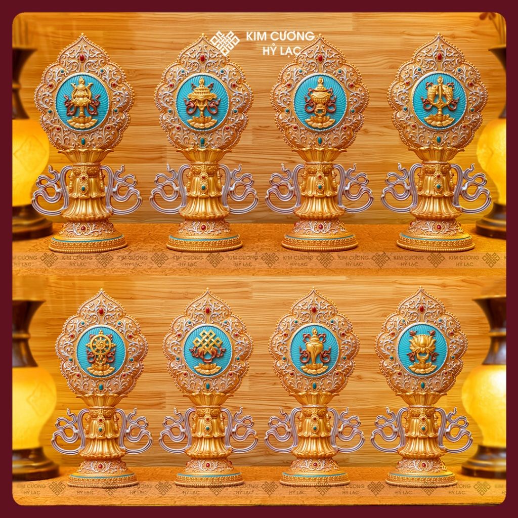 Bộ Bát Cát Tường Cúng Dường Mật Tông [Kim Cương Hỷ Lạc] Bát Cát Tường Composite Vẽ Màu Cao Cấp 20cm
