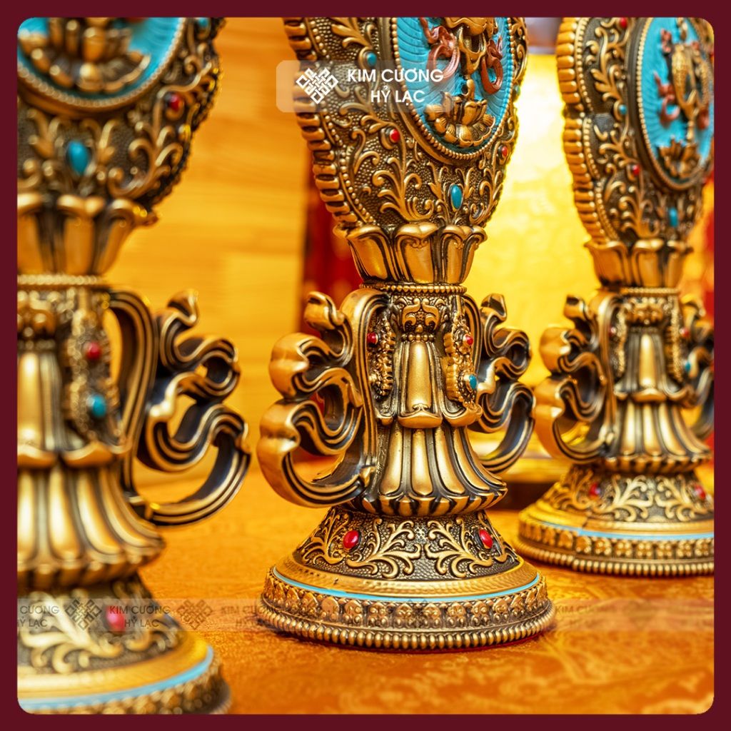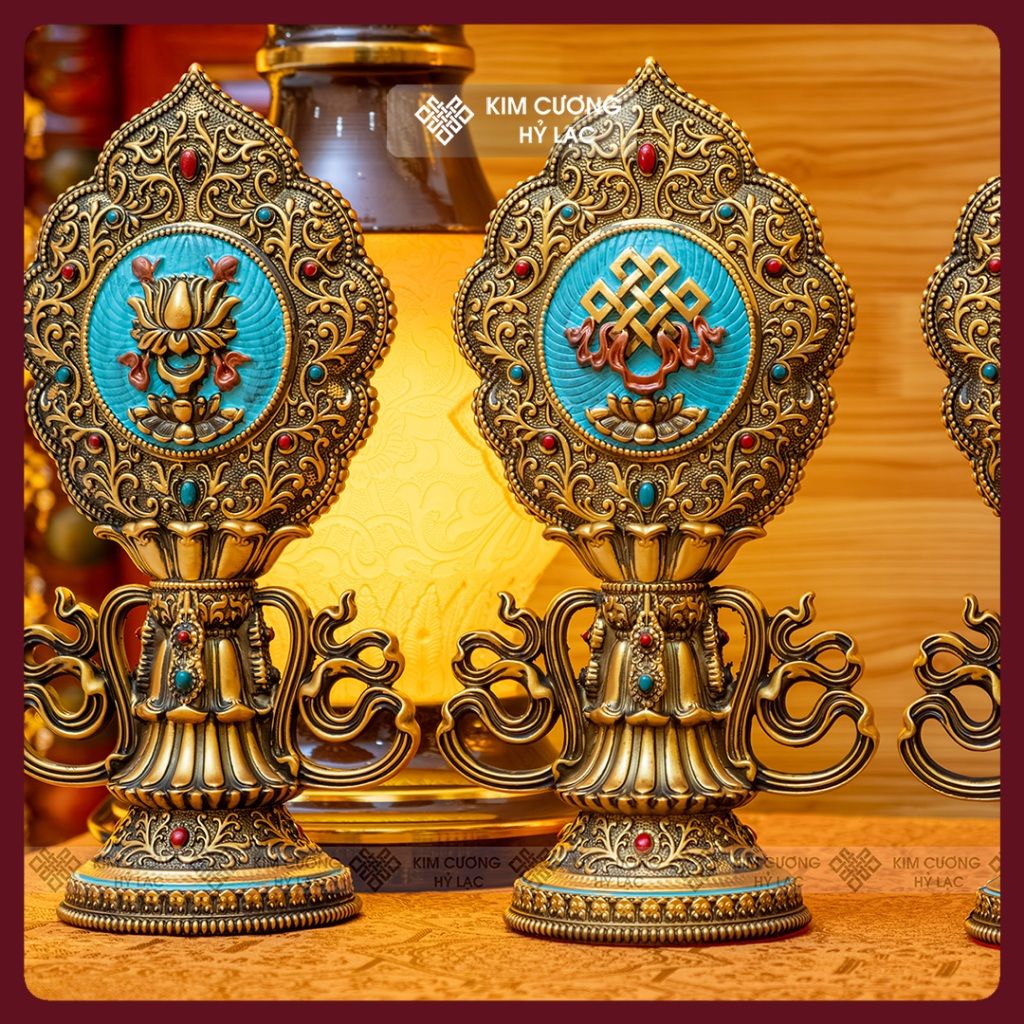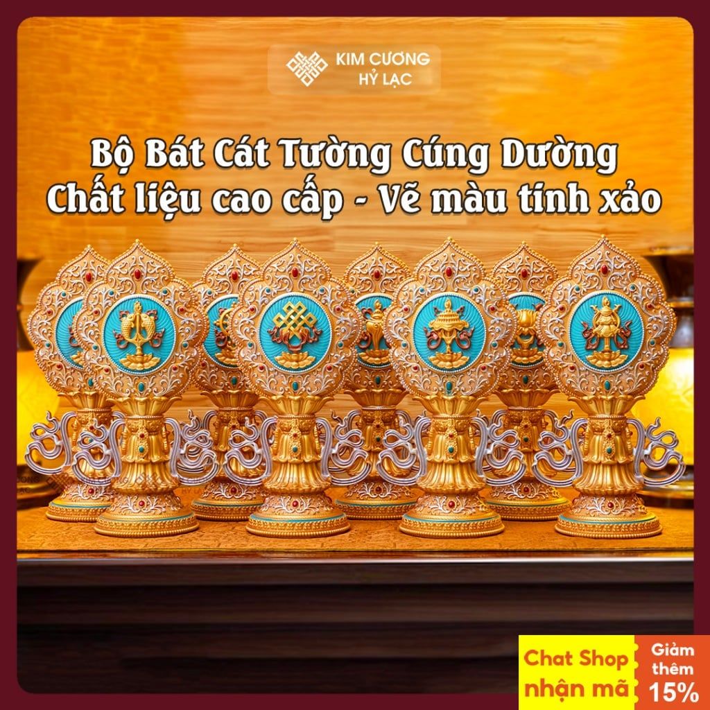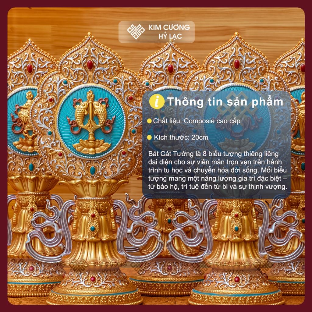 Bộ Bát Cát Tường Cúng Dường Mật Tông [Kim Cương Hỷ Lạc] Bát Cát Tường Composite Vẽ Màu Cao Cấp 20cm