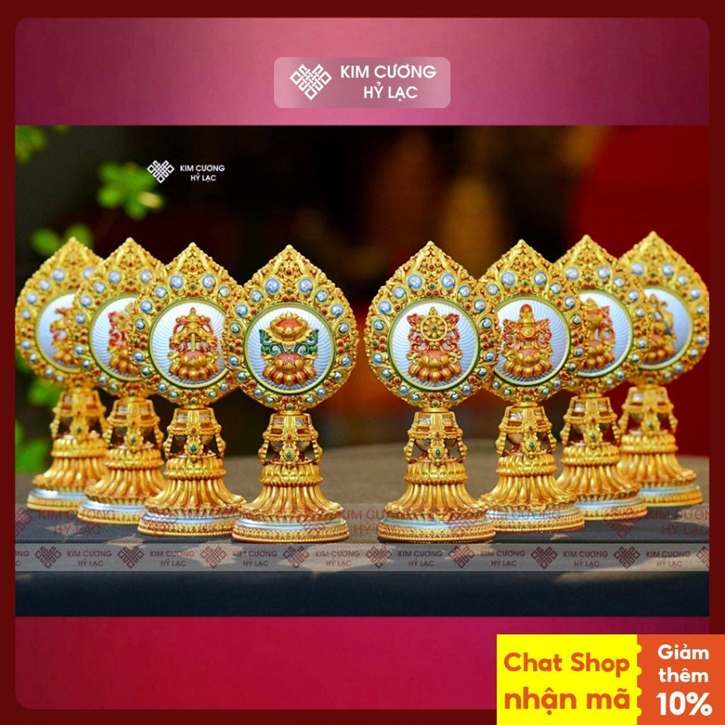 Bộ Bát Cát Tường Mật Tông [Kim Cương Hỷ Lạc] Nhựa Composite Chi Tiết Sắc Nét Siêu Bền