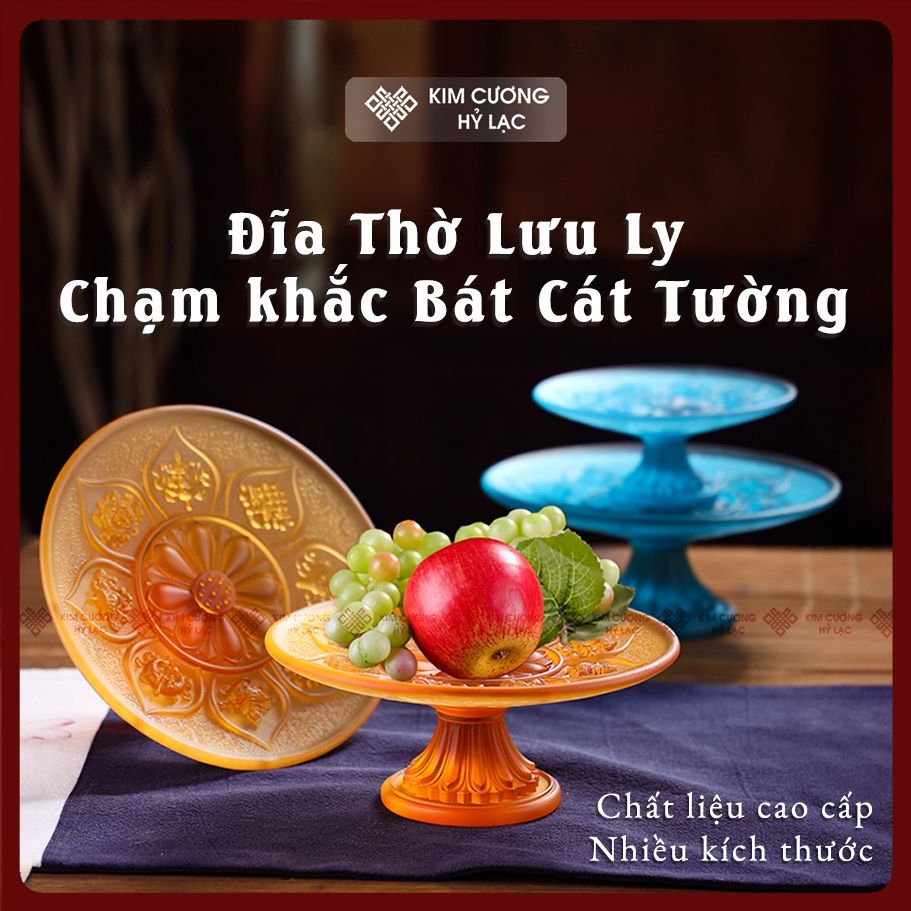 Bộ Đĩa Thờ Lưu Ly Đĩa Thờ Trưng Hoa Quả [Kim Cương Hỷ Lạc] Bộ Đĩa Thờ Cúng Lưu Ly Nhiều Kích Thước