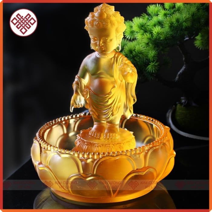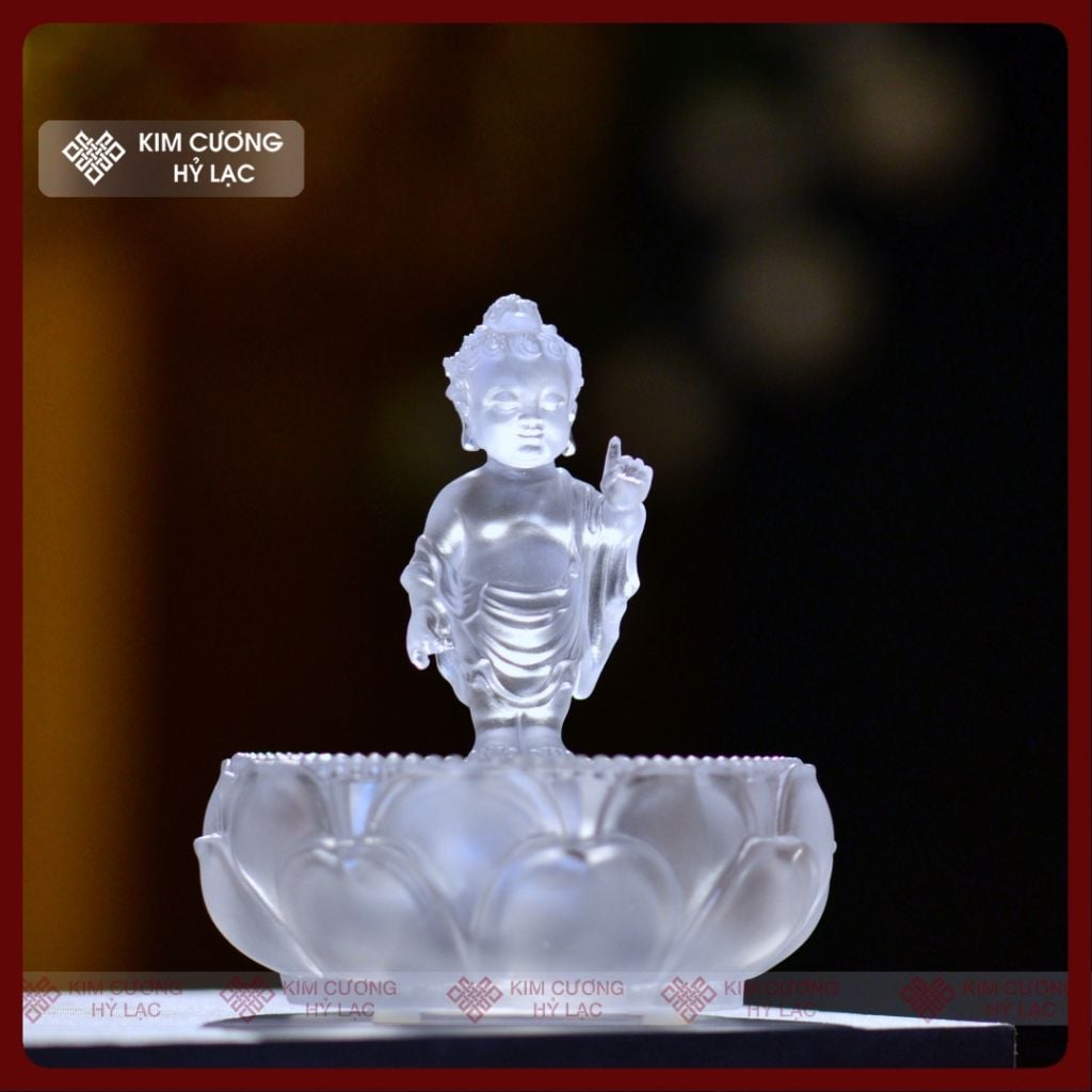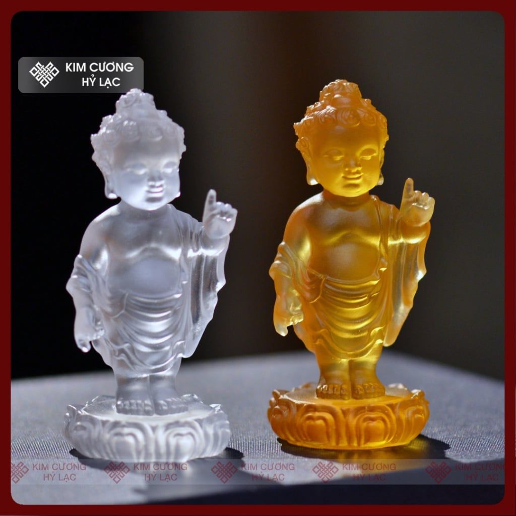 Bộ Tắm Phật Đản Sanh Mini Mật Tông [Kim Cương Hỷ Lạc] Lưu Ly 12Cm Kèm Gáo Và Chậu