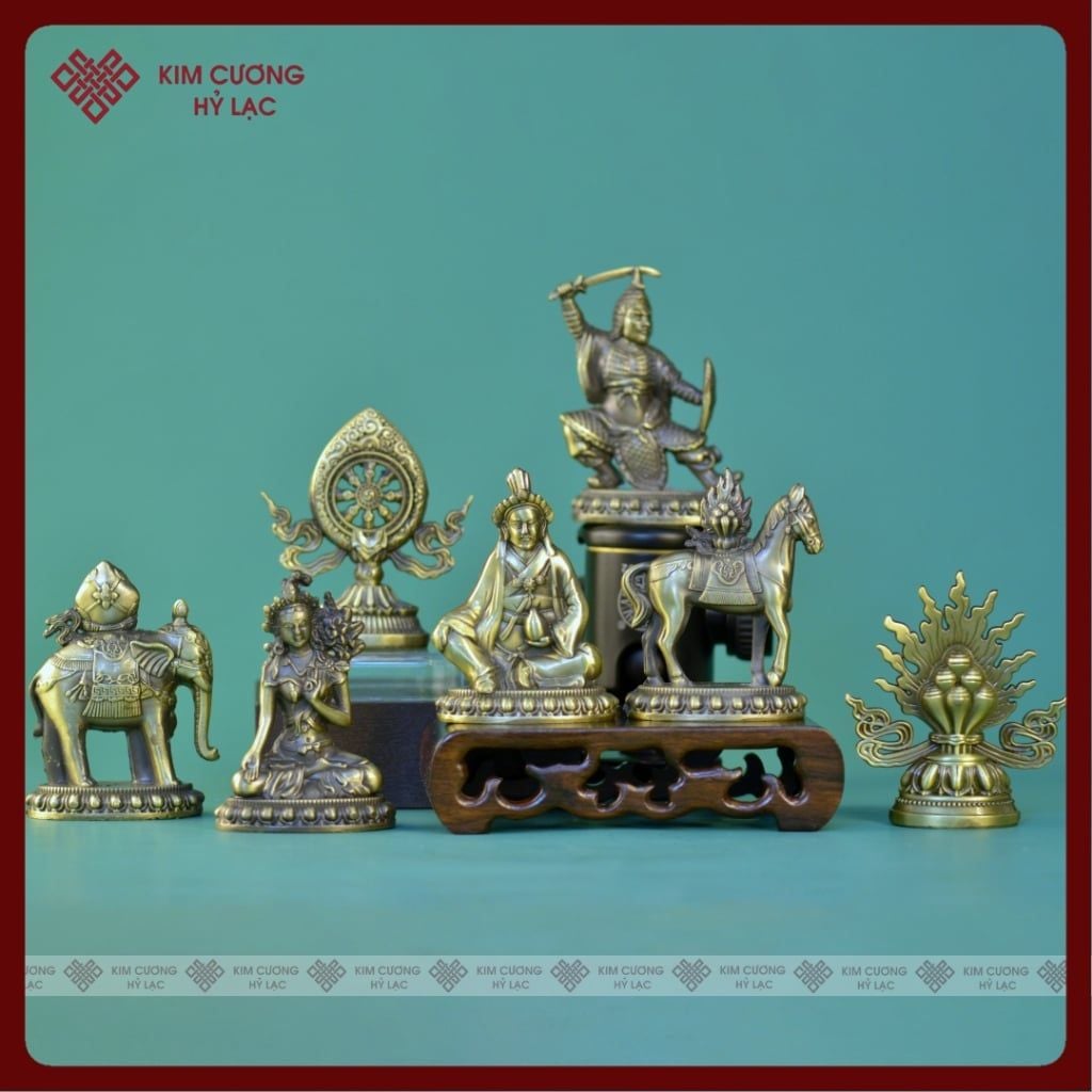 Bộ Thất Bảo Hợp Kim, Thất Bảo Luân Vương Vẽ Màu [Kim Cương Hỷ Lạc] Chất Lượng Cao 8cm