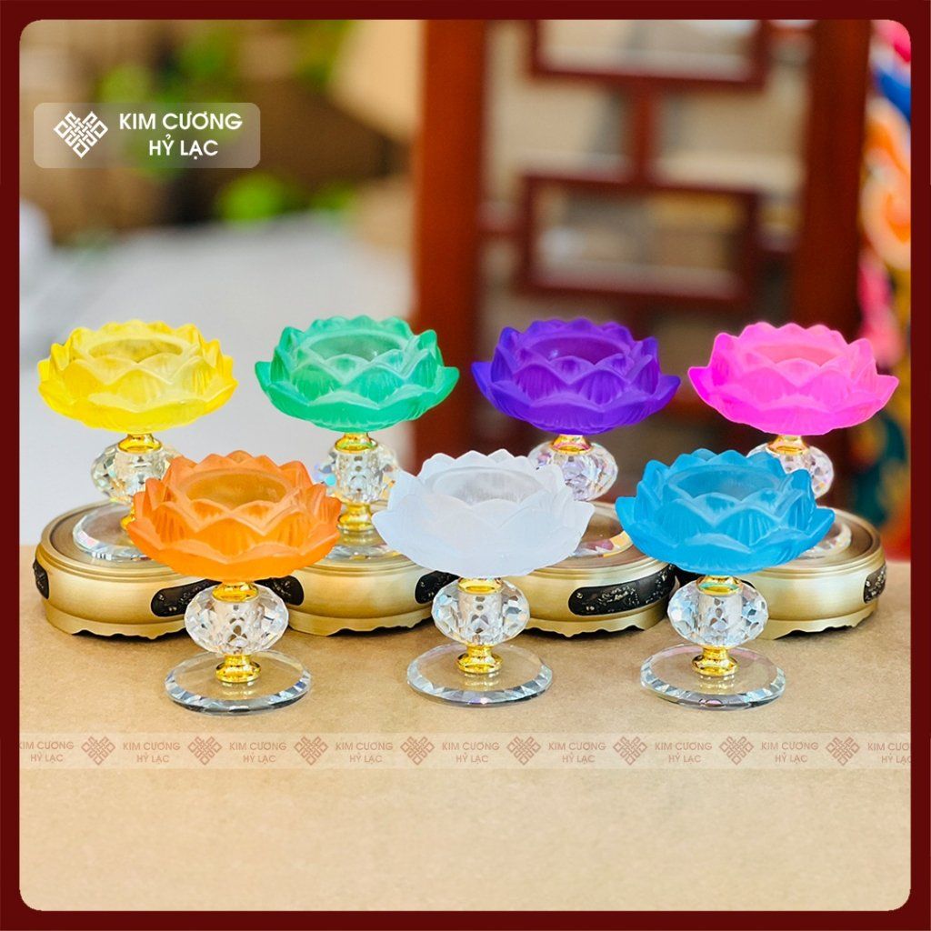 Chân Đèn Nến Bơ Lưu Ly, Đế Nến Hoa Sen Cúng Phật [Kim Cương Hỷ Lạc] Đa Dạng Màu Sắc