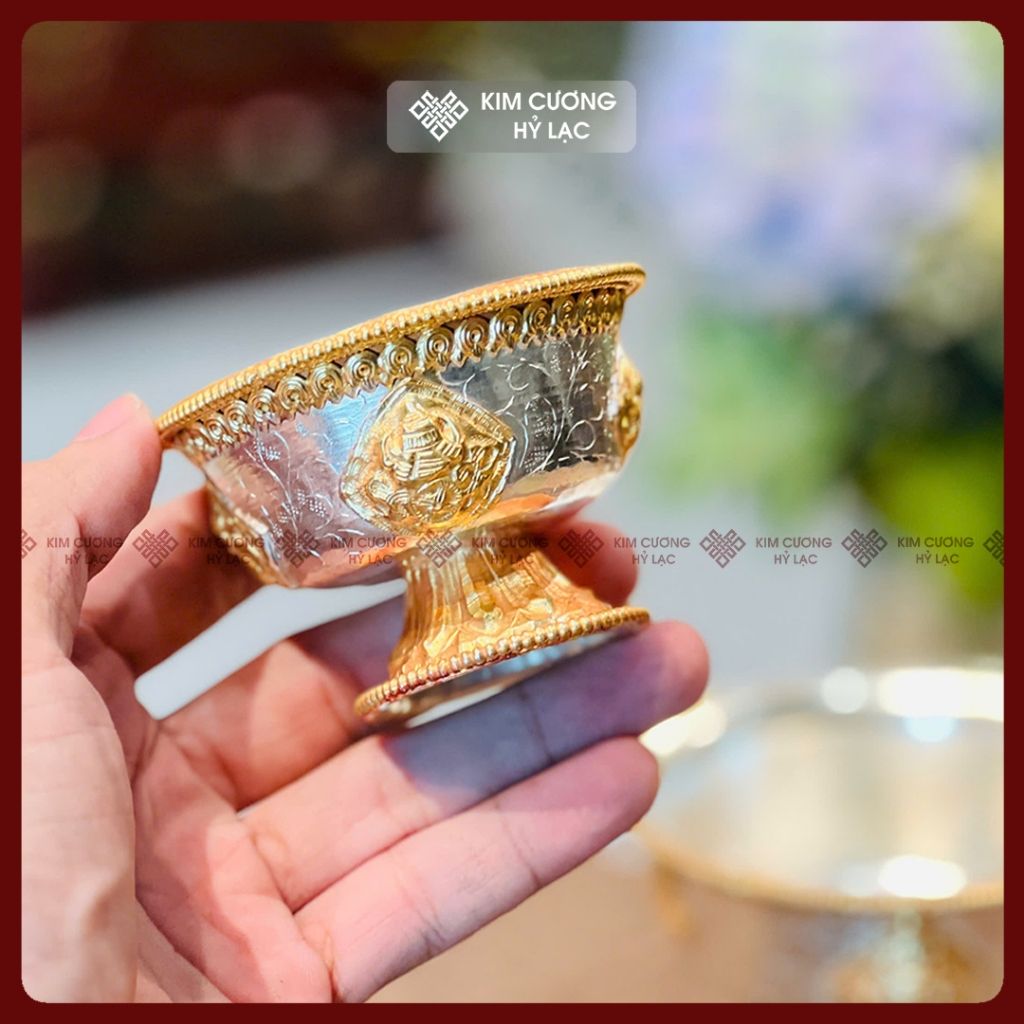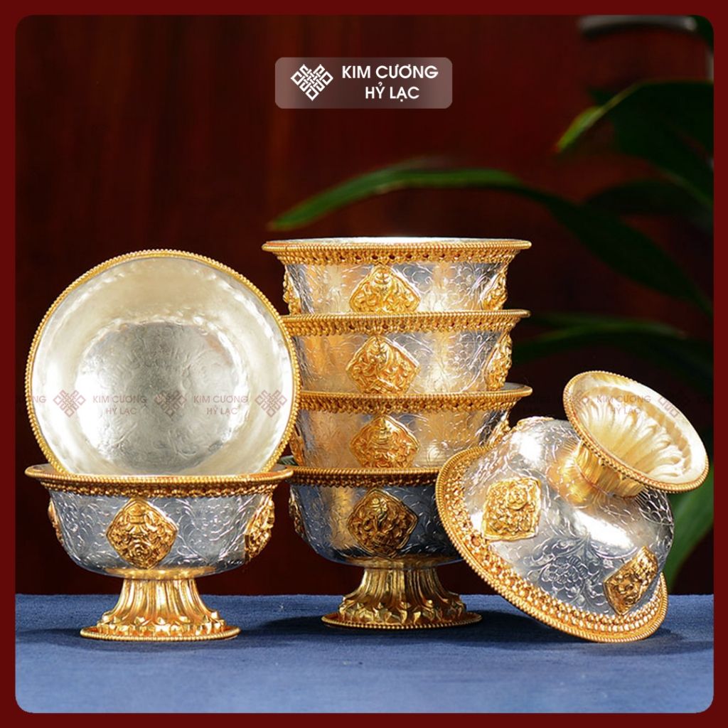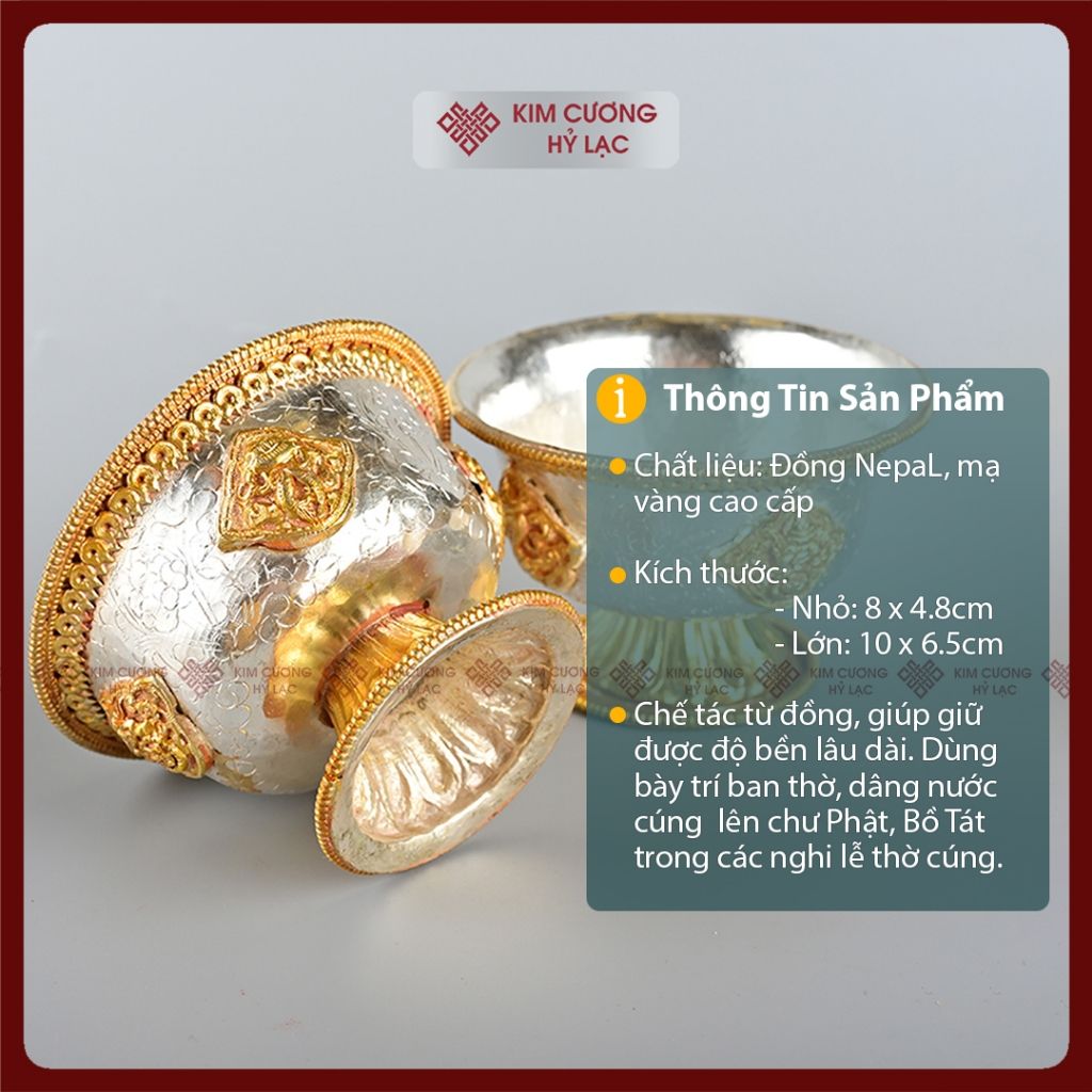 Chén Nước Cúng Dường Mật Tông [Kim Cương Hỷ Lạc] Chén Cúng Dường Đồng Mạ Vàng Nepal Nhiều Size