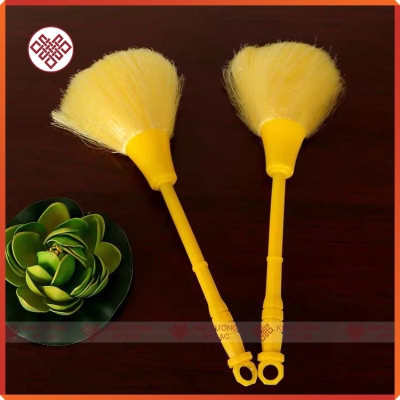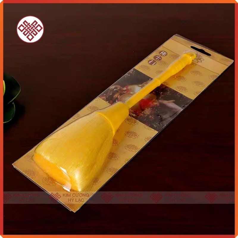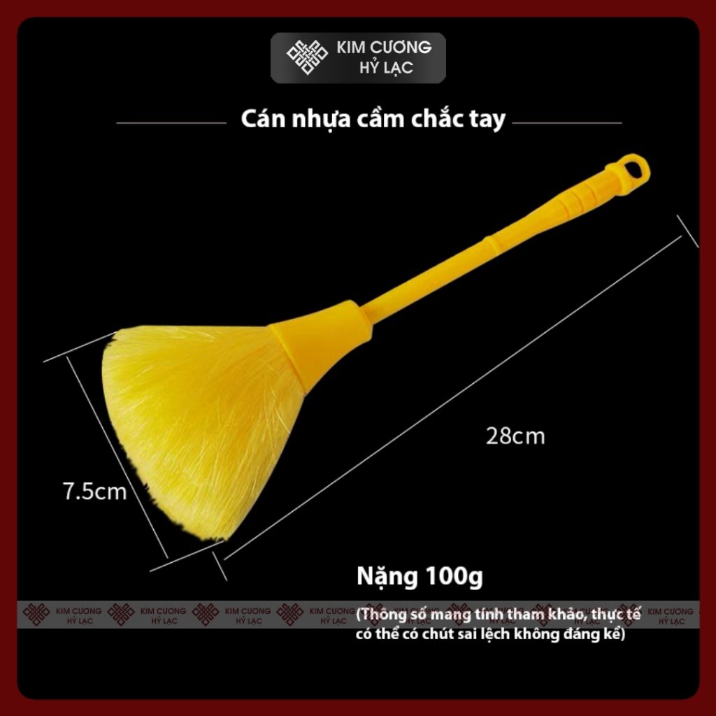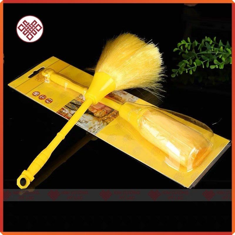 Chổi Quét Tượng Phật, Cọ Vệ Sinh Tượng Phật [Kim Cương Hỷ Lạc] Lông Siêu Dày Mịn, Cán Nhựa Vàng - Đỏ