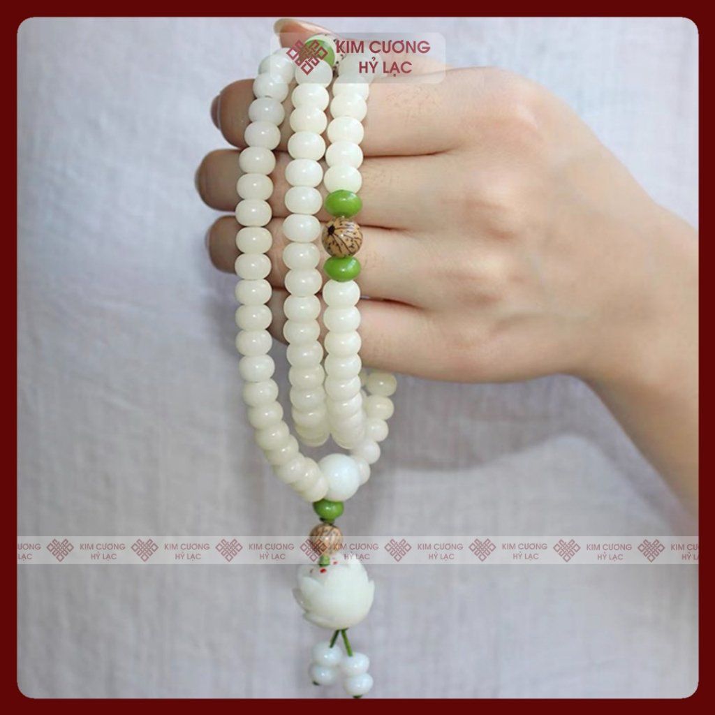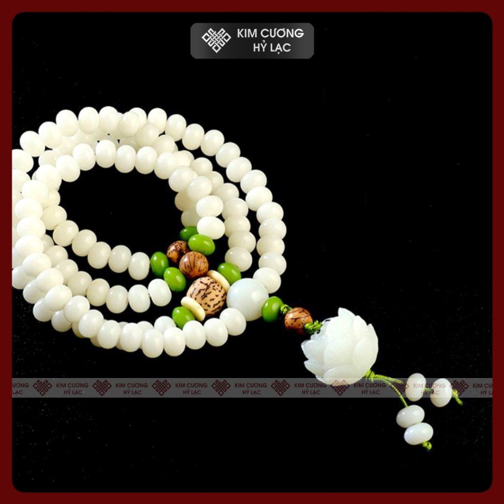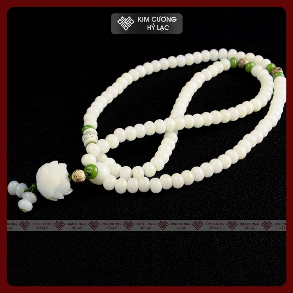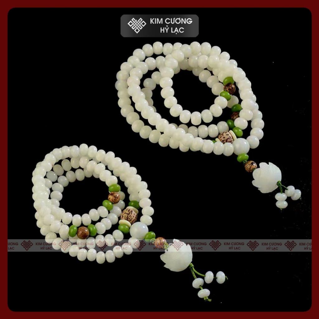 Chuỗi Niệm Phật 108 Hạt Bạch Ngọc Bồ Đề [Kim Cương Hỷ Lạc] Từ Hạt Bối Bạch Ngọc, May Mắn Bình An