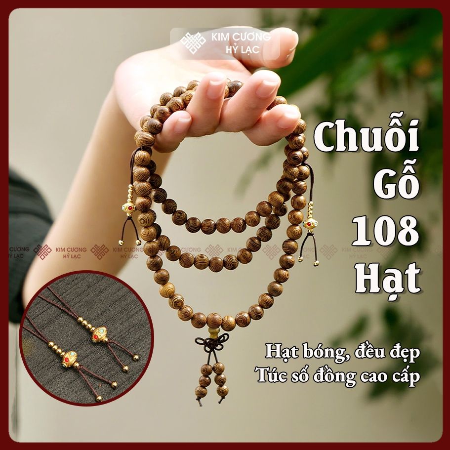 Chuỗi Vòng Gỗ Có Túc Số, Chuỗi 108 Hạt, Vòng Tay Phong Thủy [Kim Cương Hỷ Lạc] Gỗ Tự Nhiên 6 - 8mm