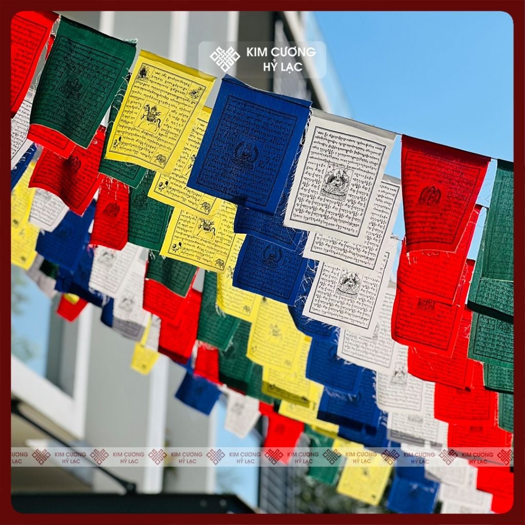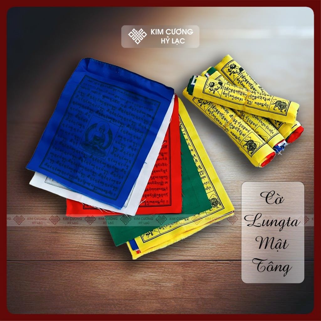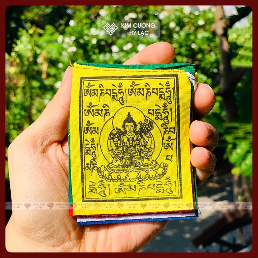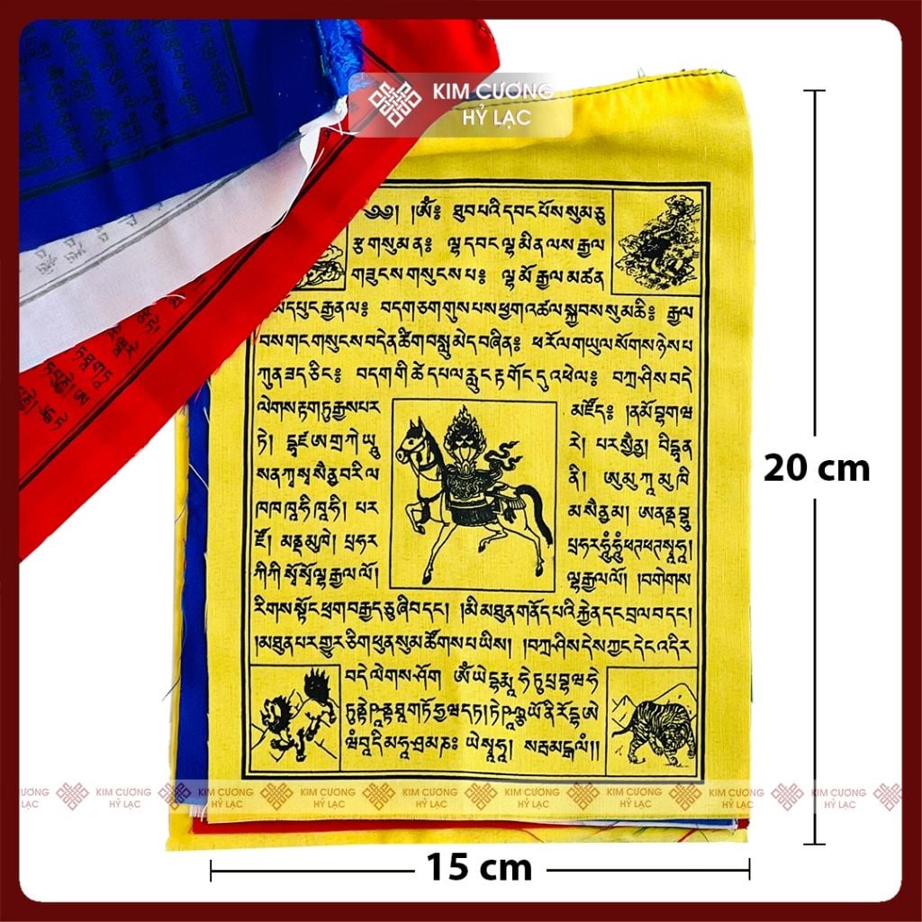 Cờ Lung Ta Mật Tông, Cờ Cầu Nguyện Phật Giáo [Kim Cương Hỷ Lạc] 20x15cm, dây 2m