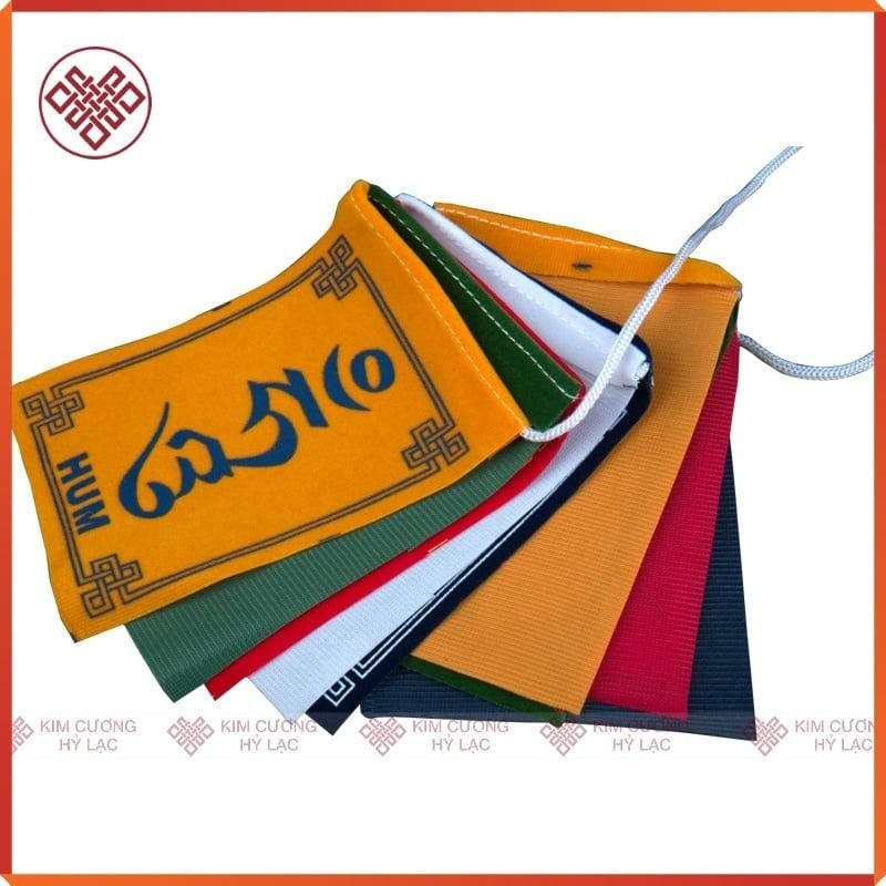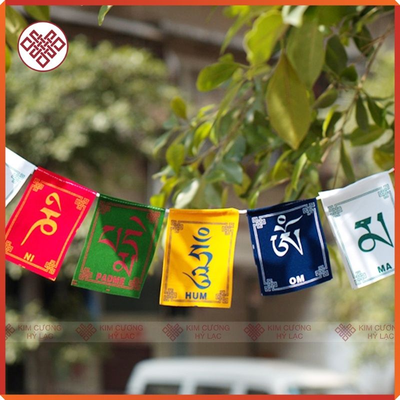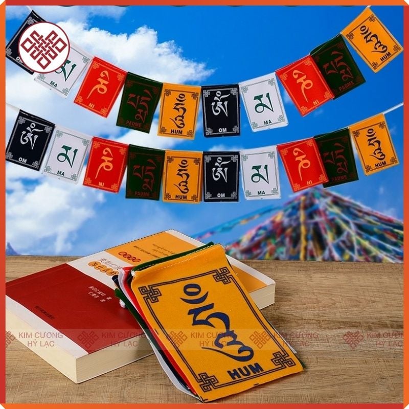 Cờ Phật Giáo Mật Tông Tây Tạng Cờ Cầu Nguyện Khắc Chú Om Mani Padme Hum[ Kim Cương Hỷ Lạc] Trang Trí Bàn Thờ