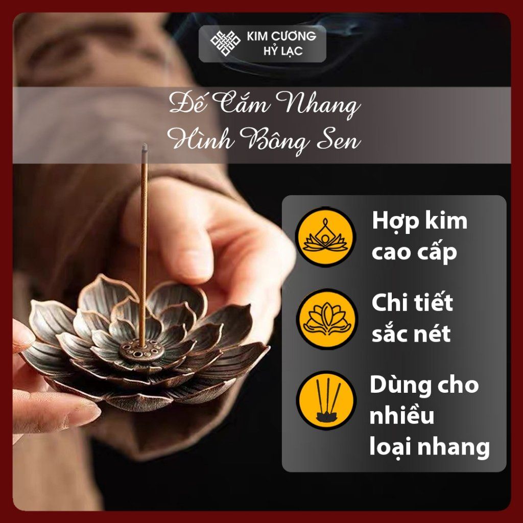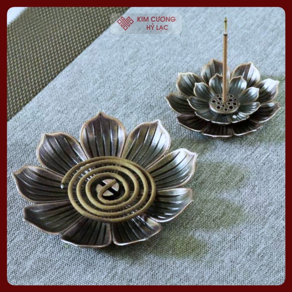 Đế Cắm Nhang Hoa Sen, Đế Đốt Trầm Hương [Kim Cương Hỷ Lạc] Hợp Kim Chất Lượng Cao, Dùng Cho Nhang Vòng, Nhang Tăm