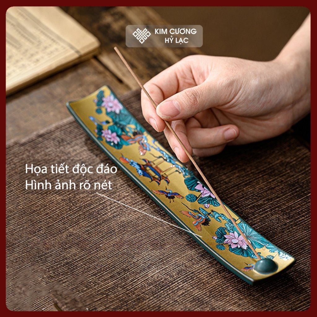 Đế Cắm Nhang- Khay Cắm Nhang Gốm Sứ [Kim Cương Hỷ Lạc] Khay Cắm Nhang Trầm Hương Nhiều Họa Tiết