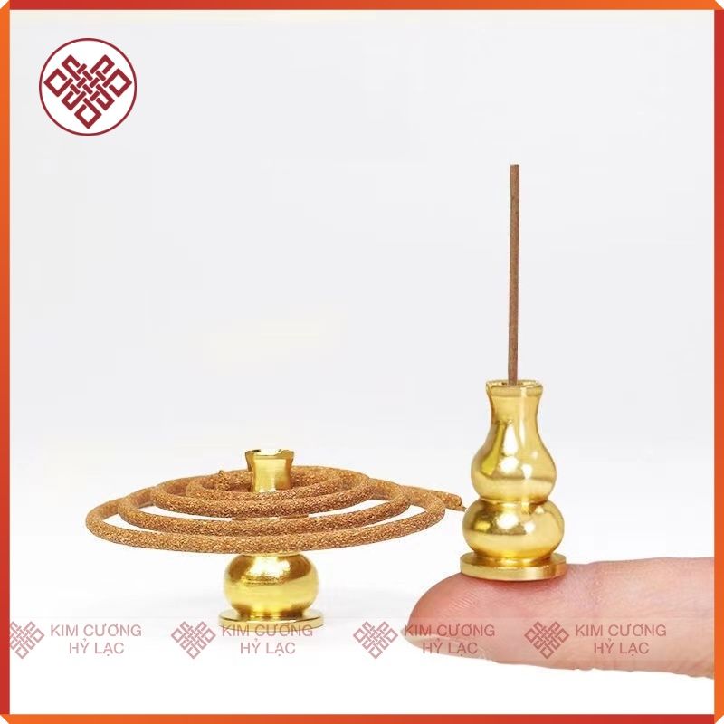 Đế Cắm Nhang Vòng Bằng Đồng Đặc, Đặt Hương Cây Mật Tông [Kim Cương Hỷ Lạc] Hình Hồ Lô