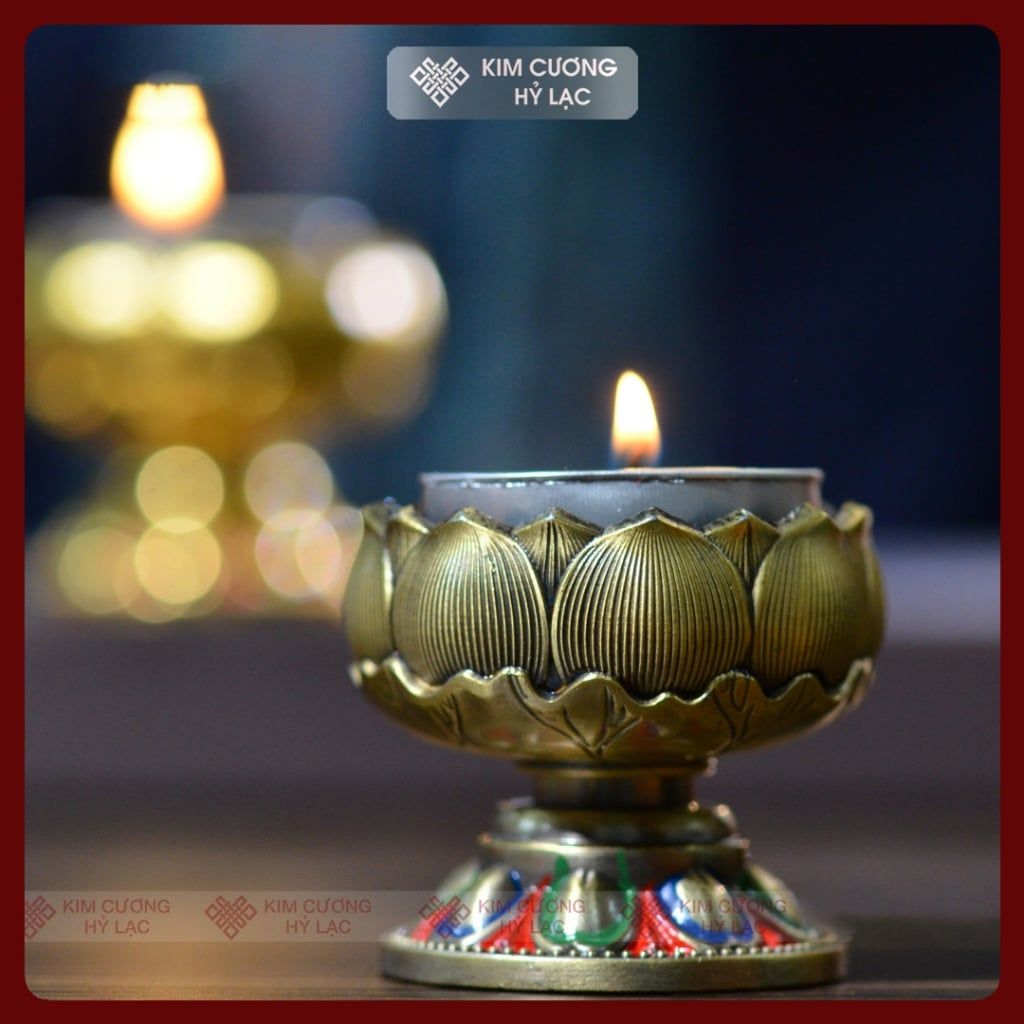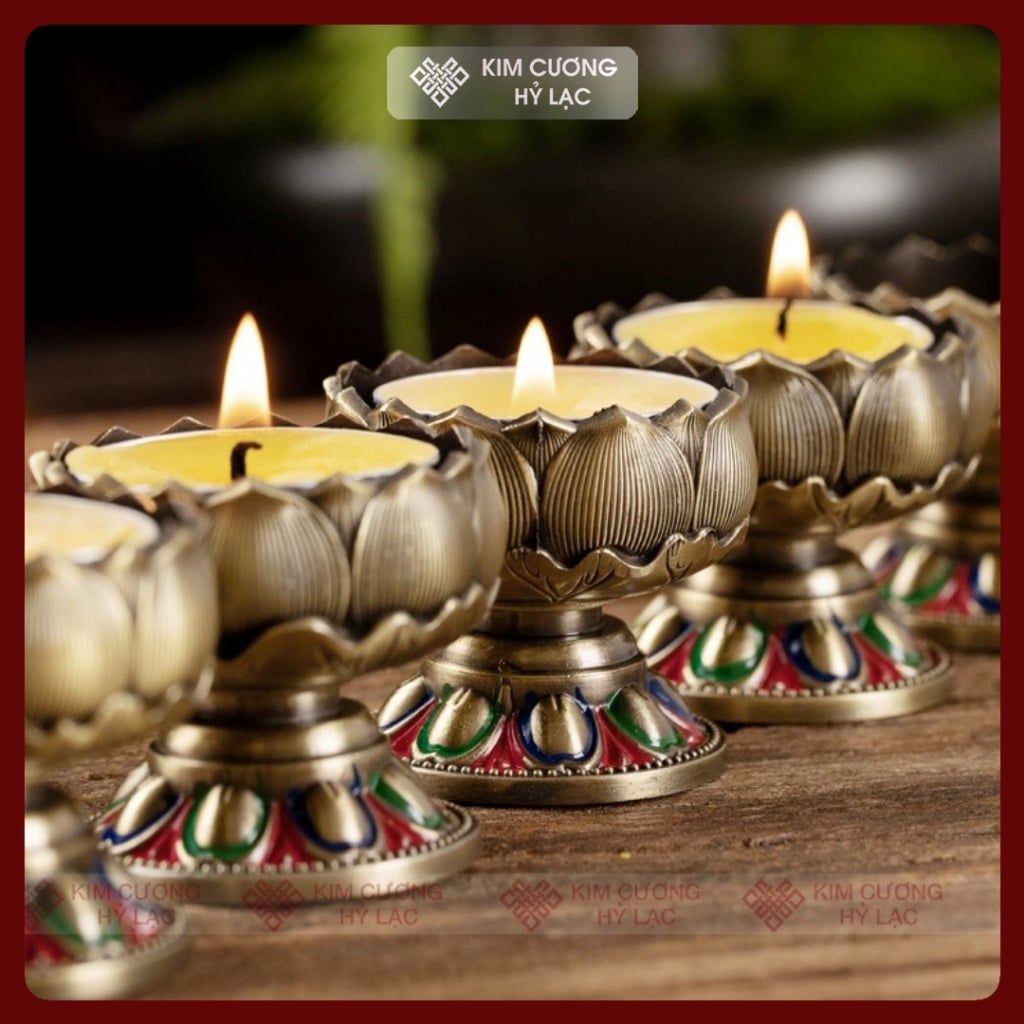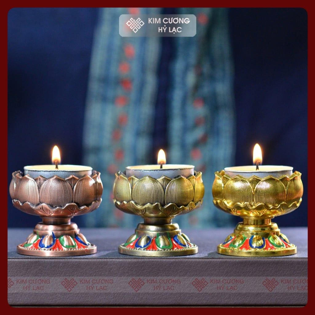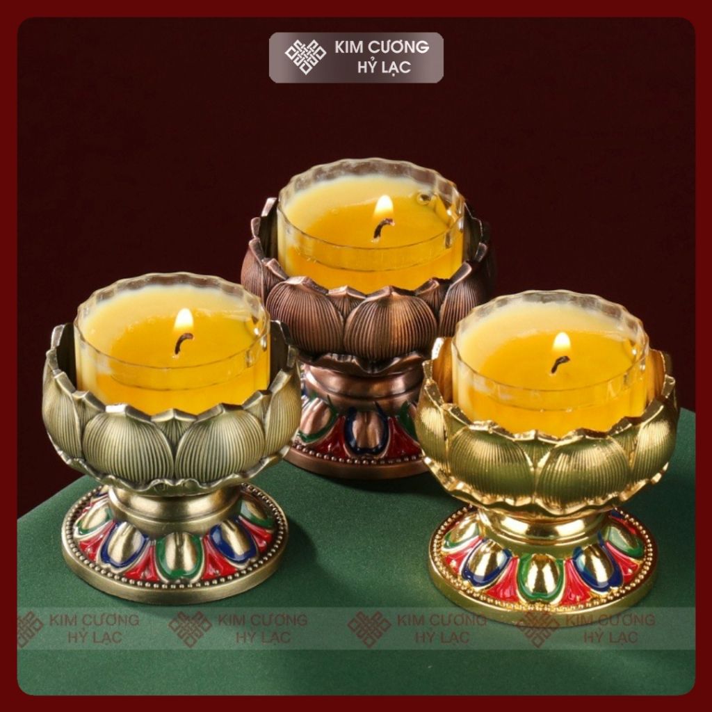 Đế Nến Đèn Cầy, Chân Đèn Bơ Cúng Phật [Kim Cương Hỷ Lạc] Hoa Sen Cát Tường Thịnh Vượng