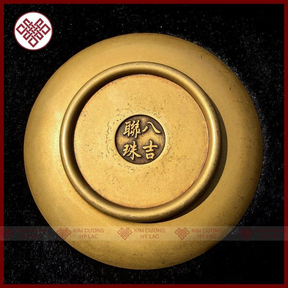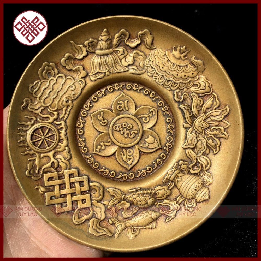 Đĩa Đồng Thờ Cúng Mật Tông [Kim Cương Hỷ Lạc] Khắc Bát Cát Tường Và Thần Chú Om Mani Padme Hum
