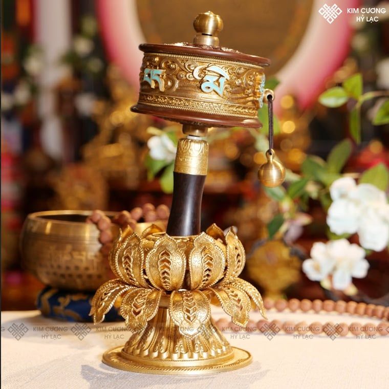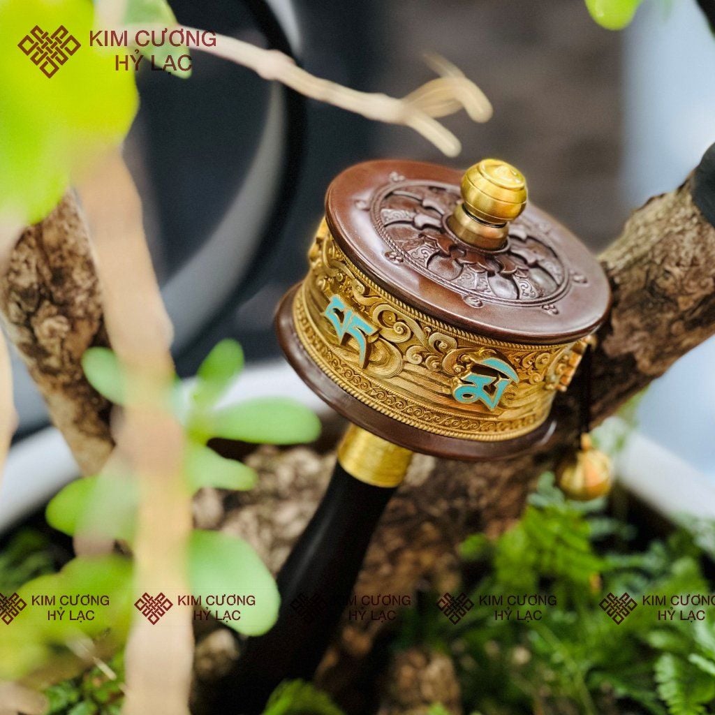 Kinh Luân Cầm Tay Đồng Chạm Khắc Chữ Nổi Chú Om Mani Padme Hum [Kim Cương Hỷ Lạc]
