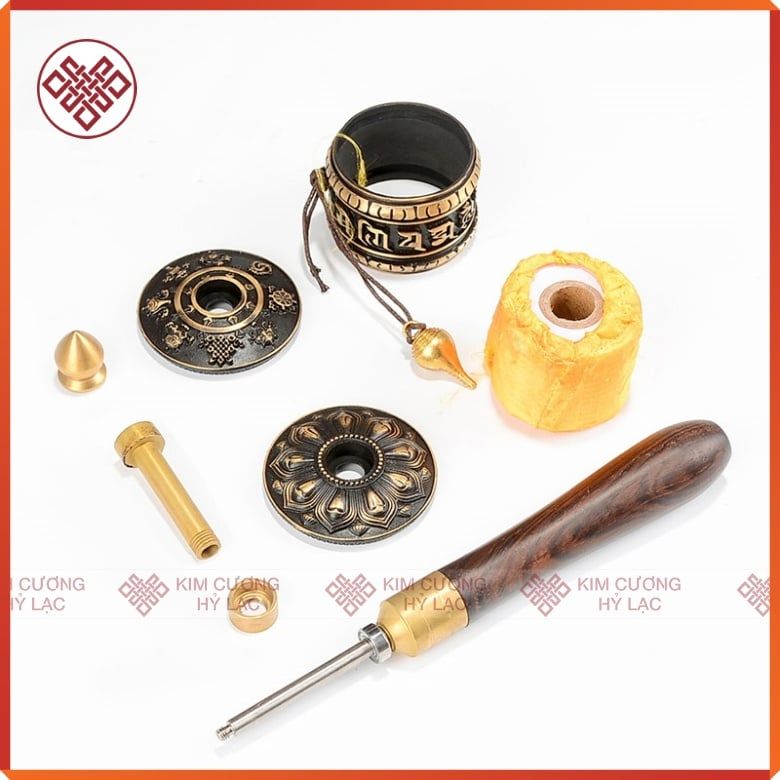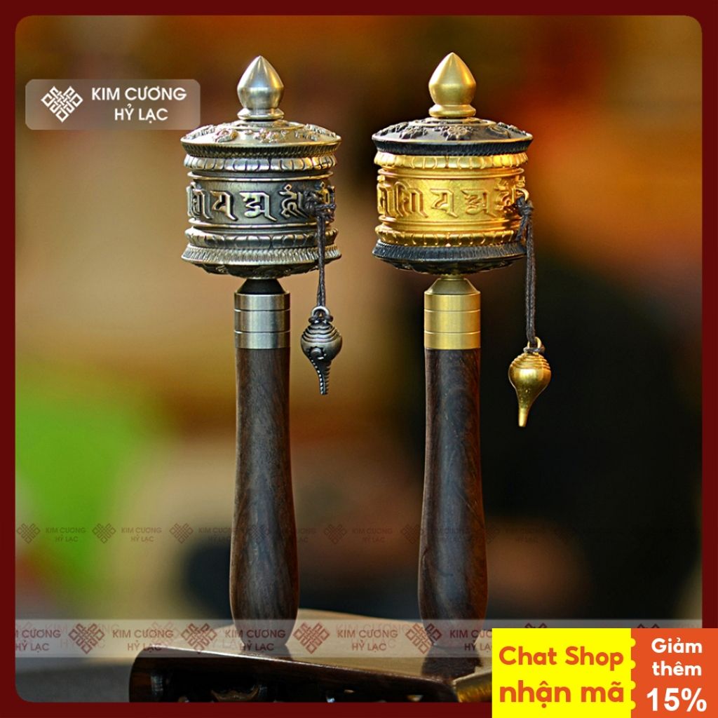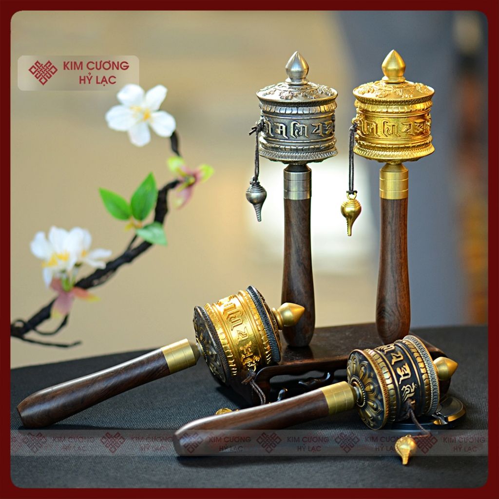 Kinh Luân Cầm Tay Phong Cách Cổ 4000 Biến Chú [Kim Cương Hỷ Lạc] Chất Liệu Đồng Cán Gỗ