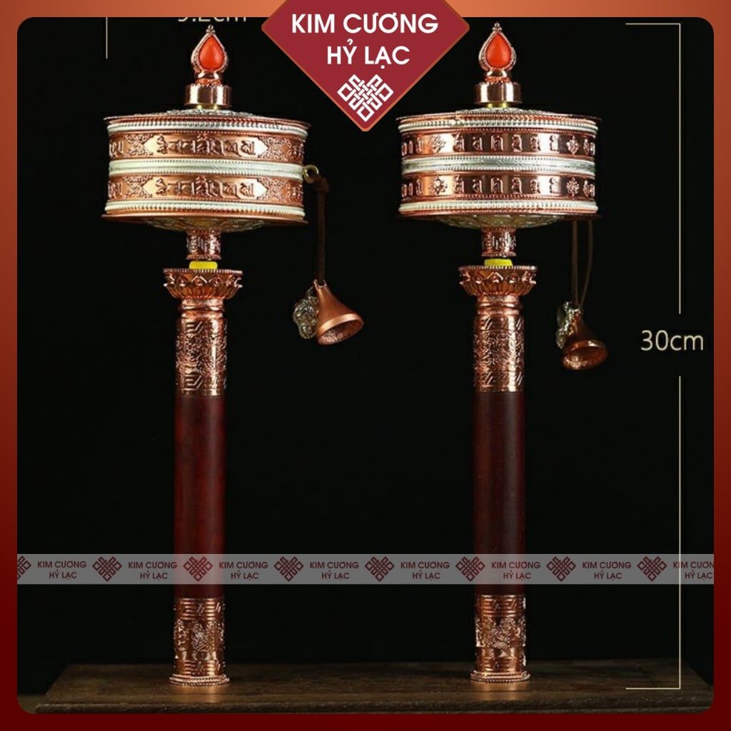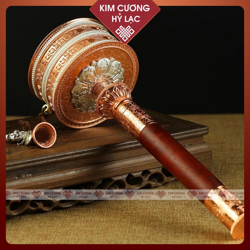 Kinh Luân Cầm Tay Xoay Hợp Kim Màu Vàng Loại 28cm Kim Cương Hỷ Lạc