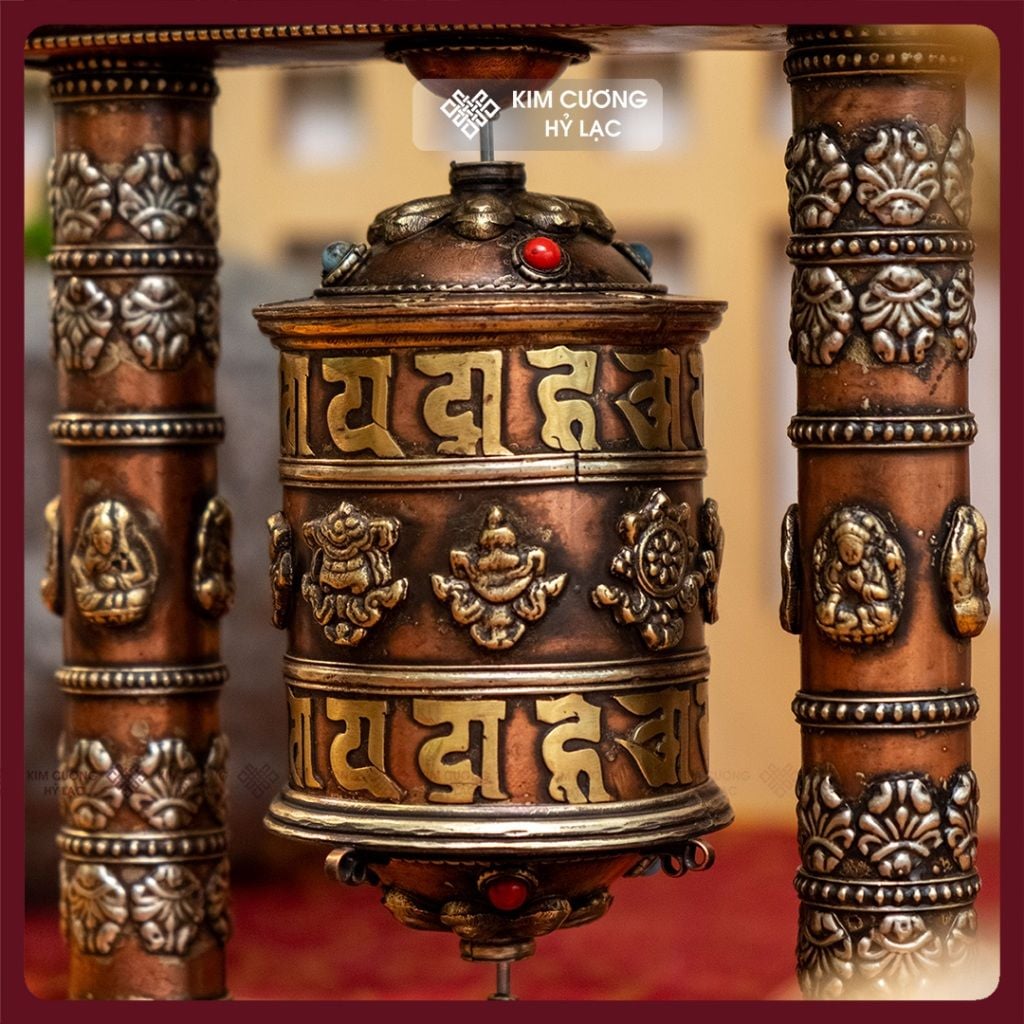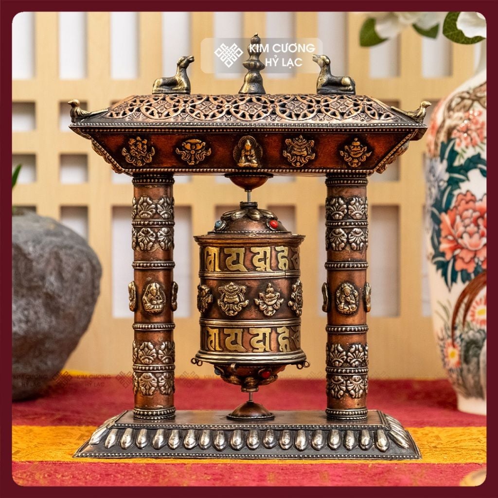 Kinh Luân Để Bàn Cổ Điển-Kinh Luân Thủ Công Nepal [Kim Cương Hỷ Lạc] Kinh Luân Đồng Để Bàn Hàng Hiếm