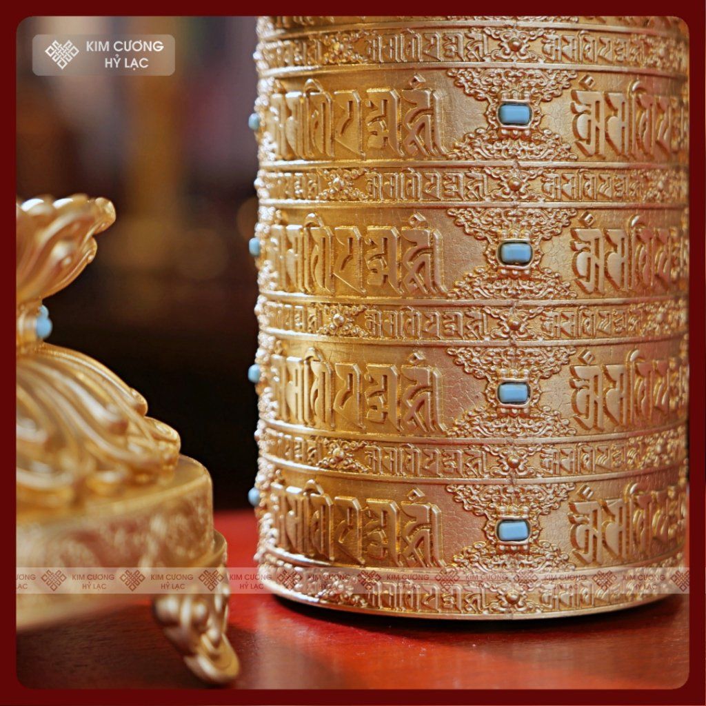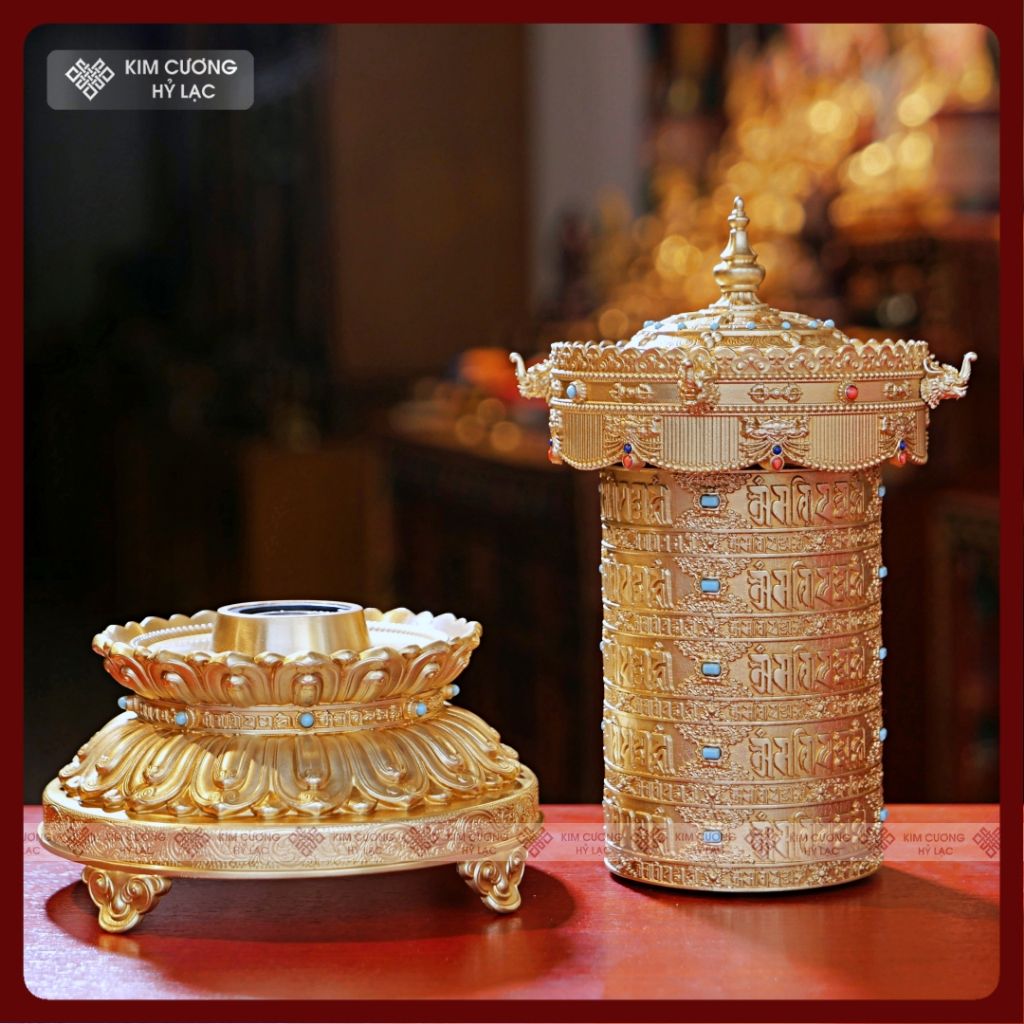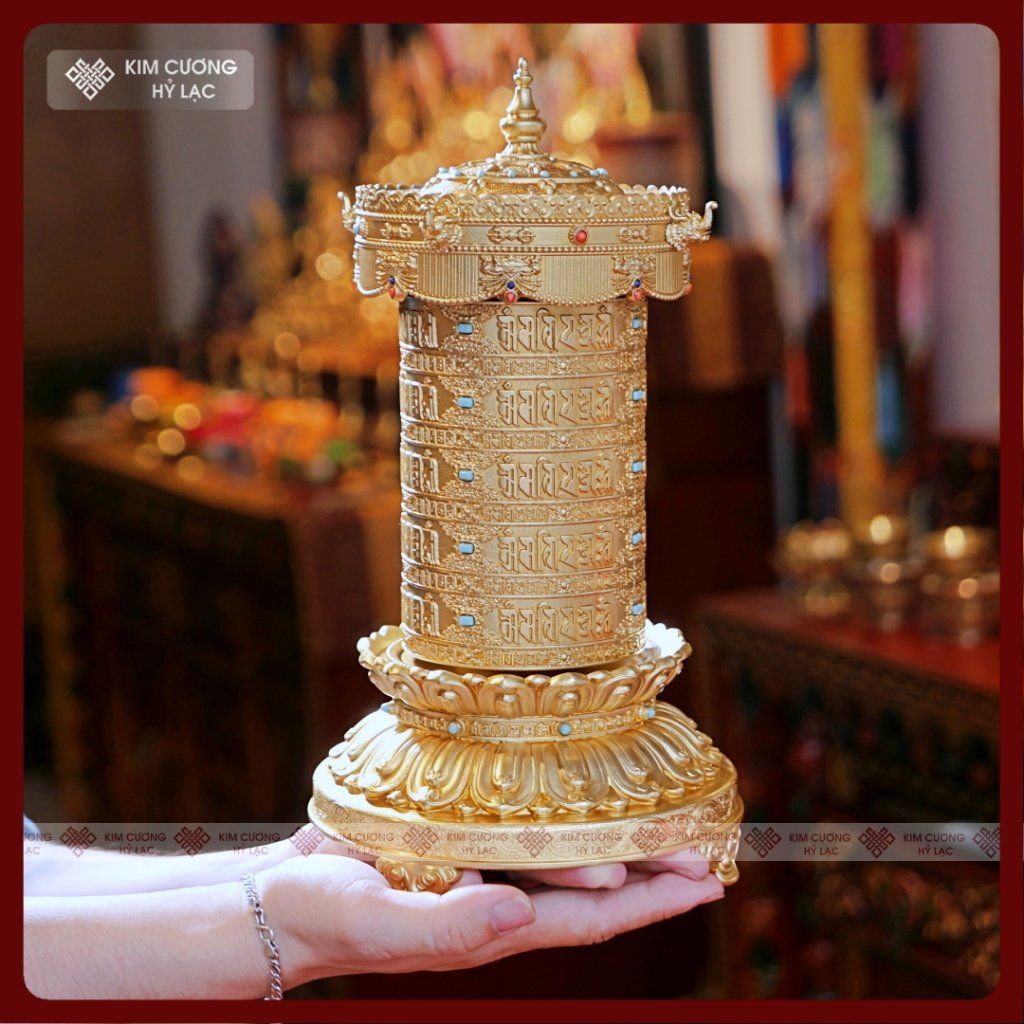 Kinh Luân Điện 25 Triệu Biến Lục Tự [Kim Cương Hỷ Lạc] Đồng Mạ Vàng Cao Cấp 28Cm Bảo Hành 1 Năm