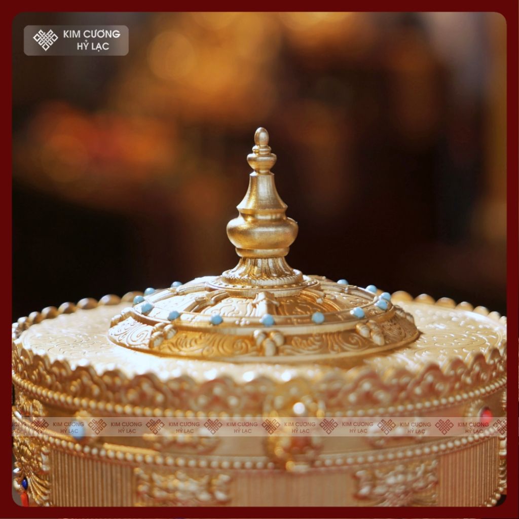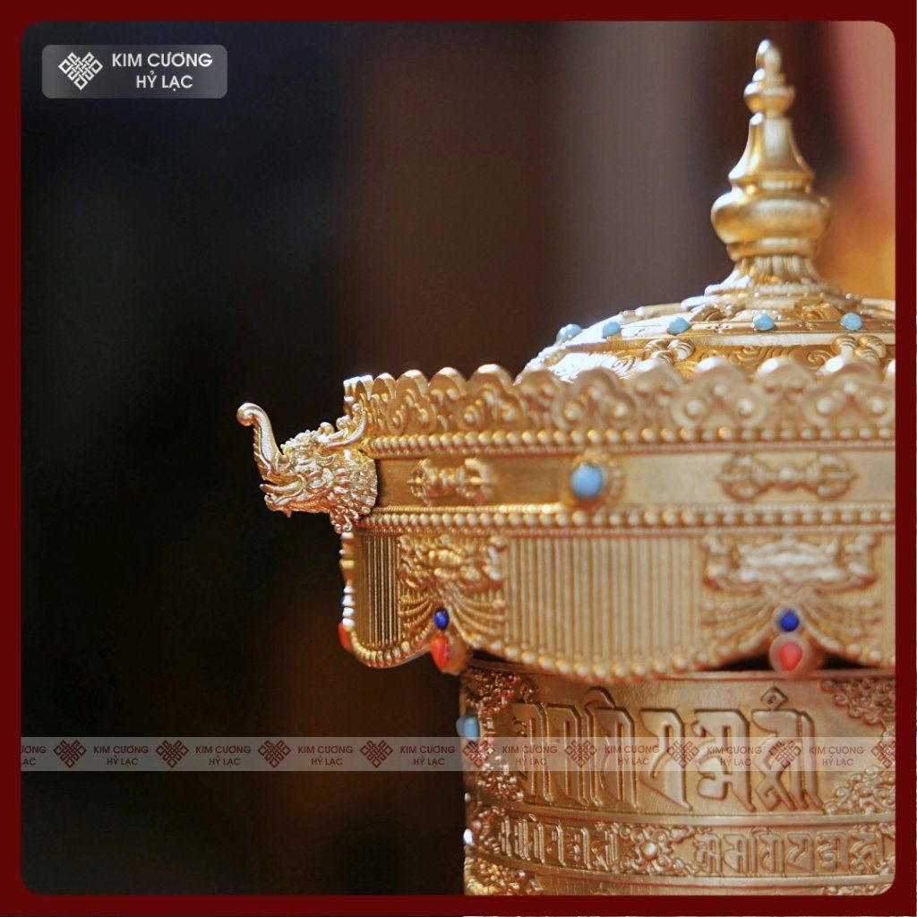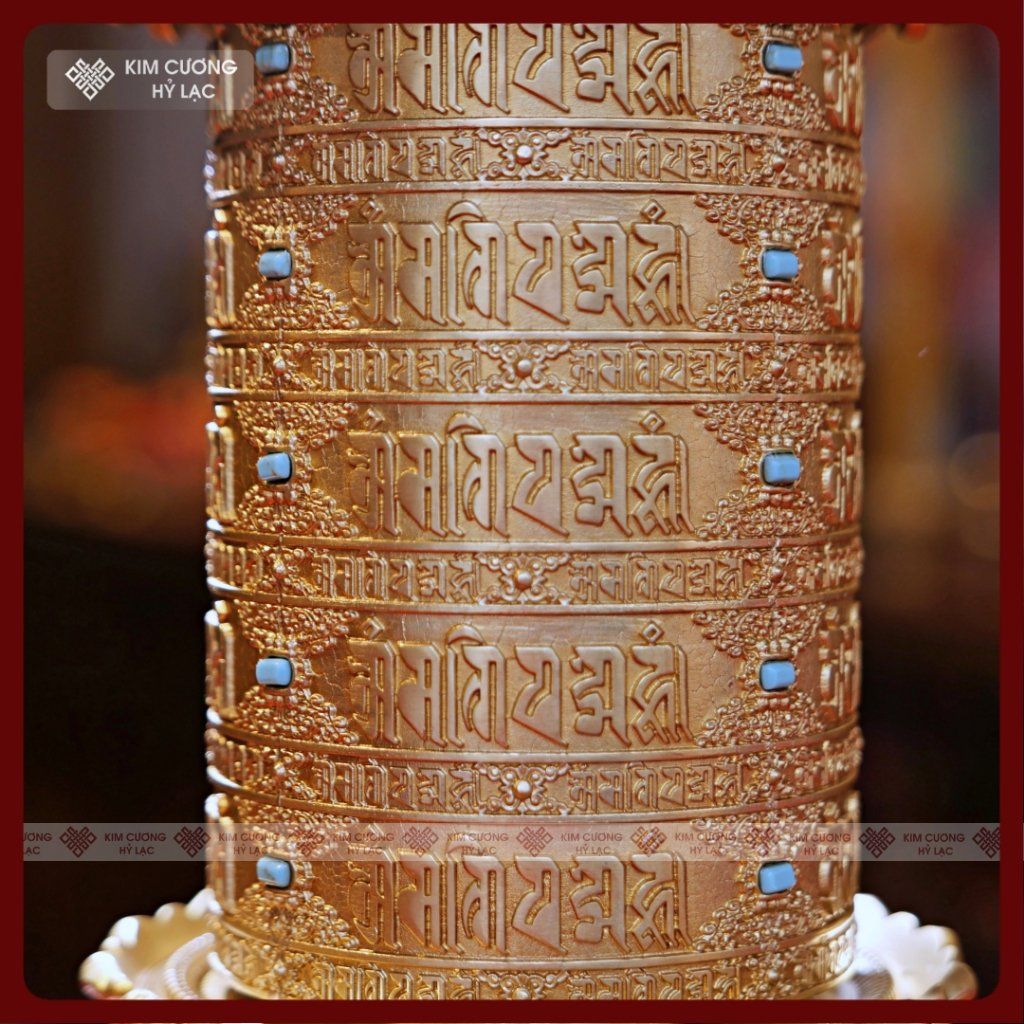 Kinh Luân Điện 25 Triệu Biến Lục Tự [Kim Cương Hỷ Lạc] Đồng Mạ Vàng Cao Cấp 28Cm Bảo Hành 1 Năm