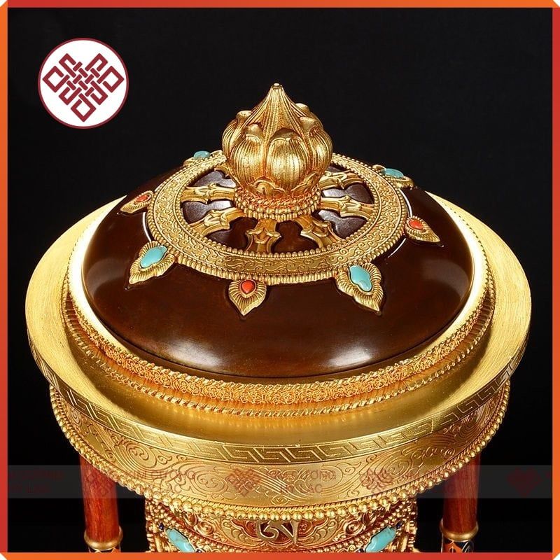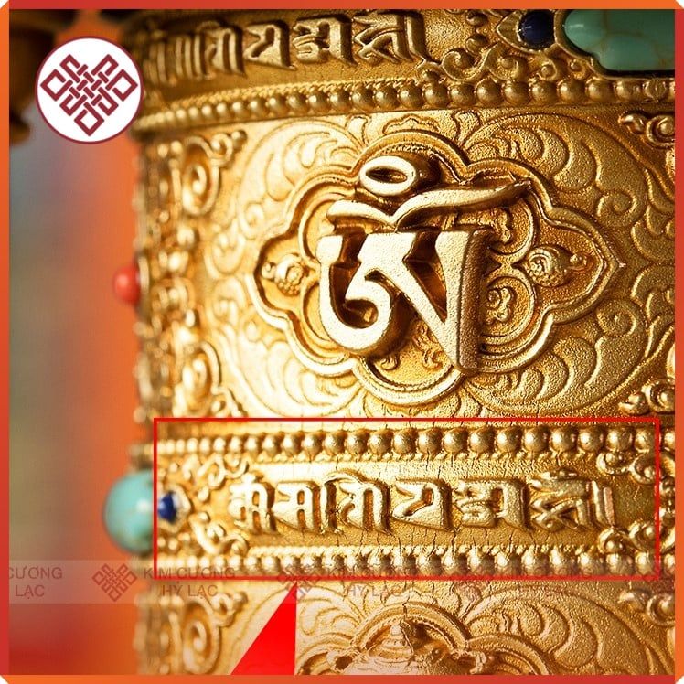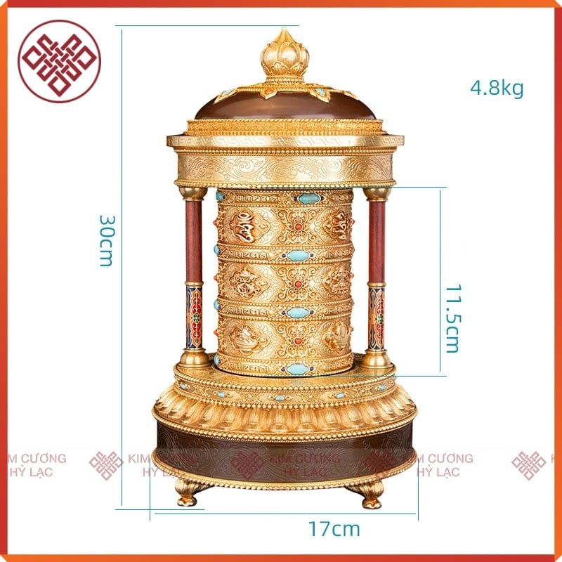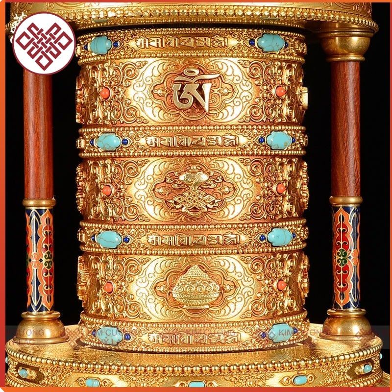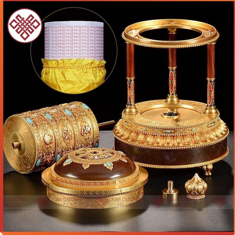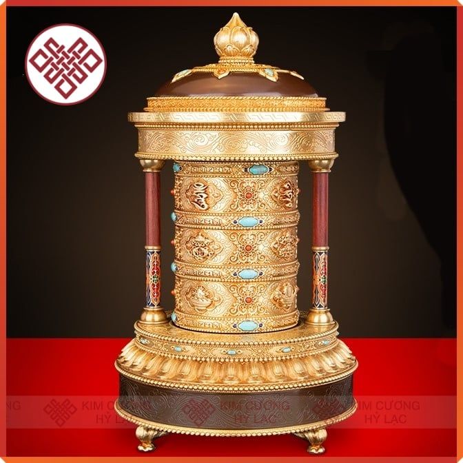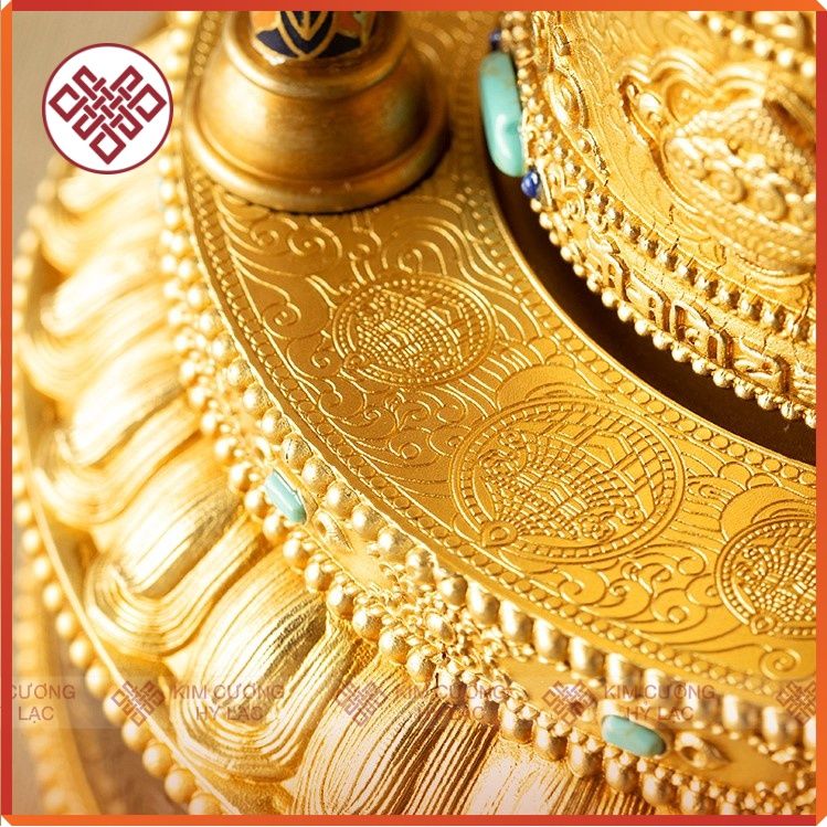 Kinh Luân Điện Phong Thủy Để Bàn - Bánh Xe Mani Mật Tông [Kim Cương Hỷ Lạc] Cẩn Đá Cao Cấp