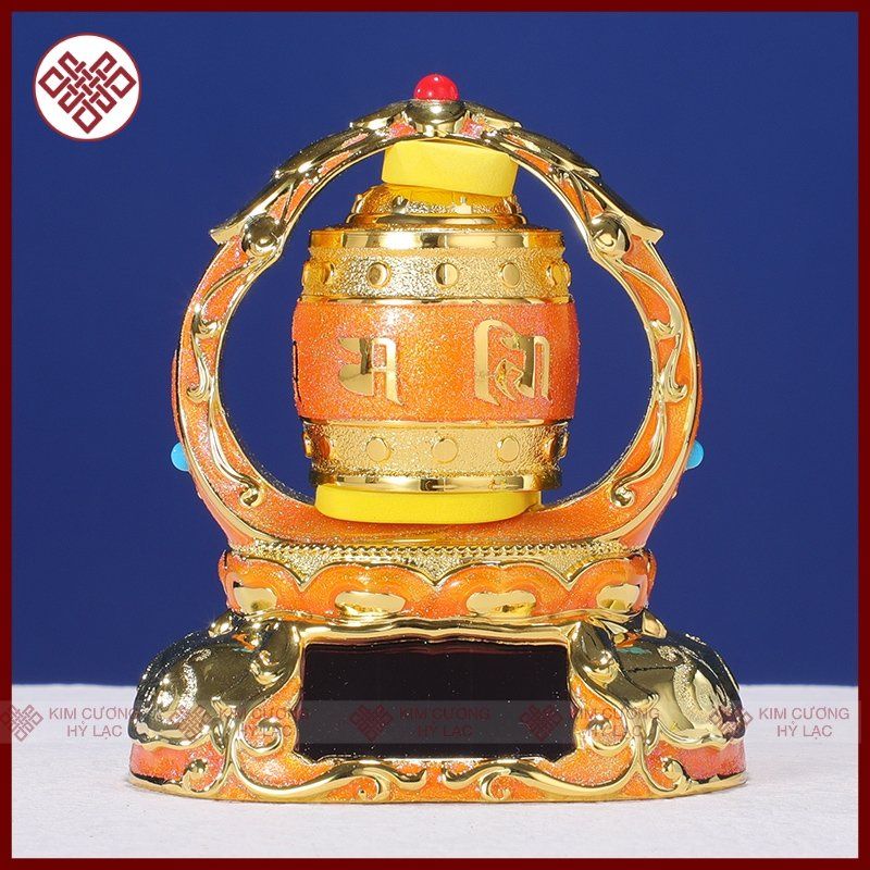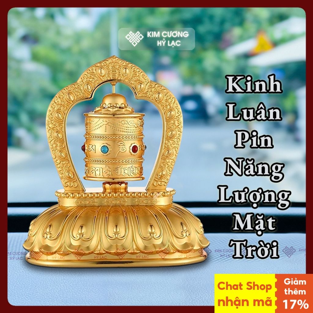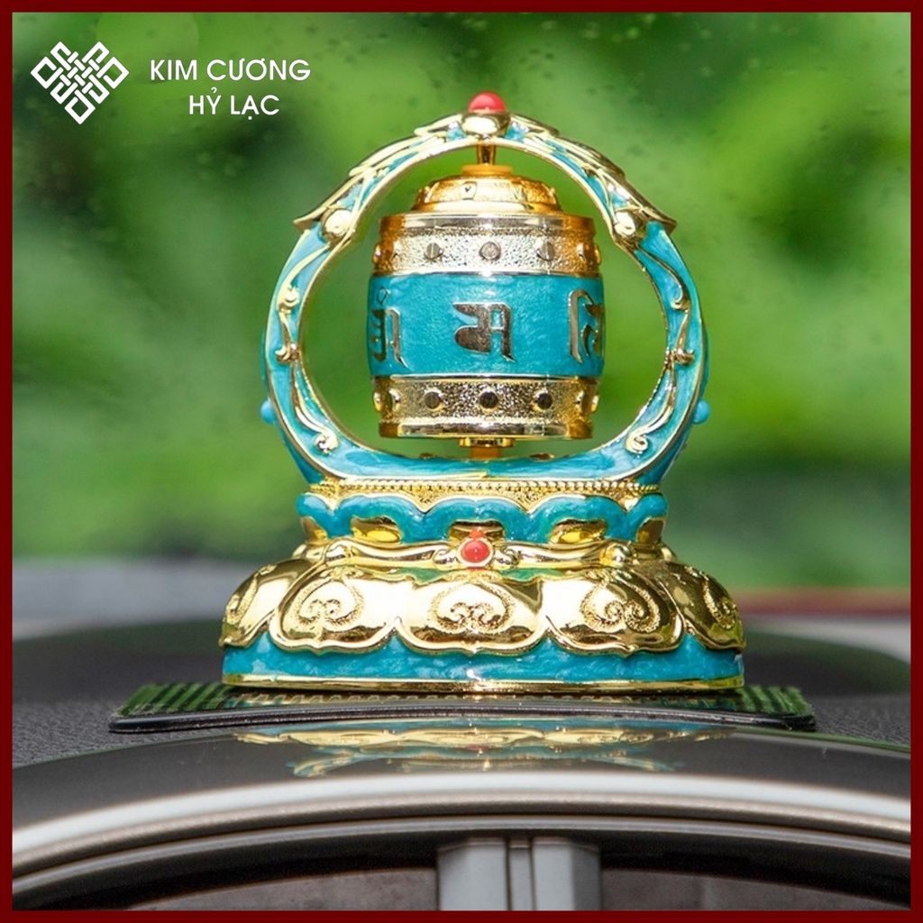 Kinh Luân Xoay Trang Trí Taplo Ô Tô [Kim Cương Hỷ Lạc] Mang Lại Bình An Và May Mắn, Mẫu Hợp Kim Năng Lượng Mặt Trời
