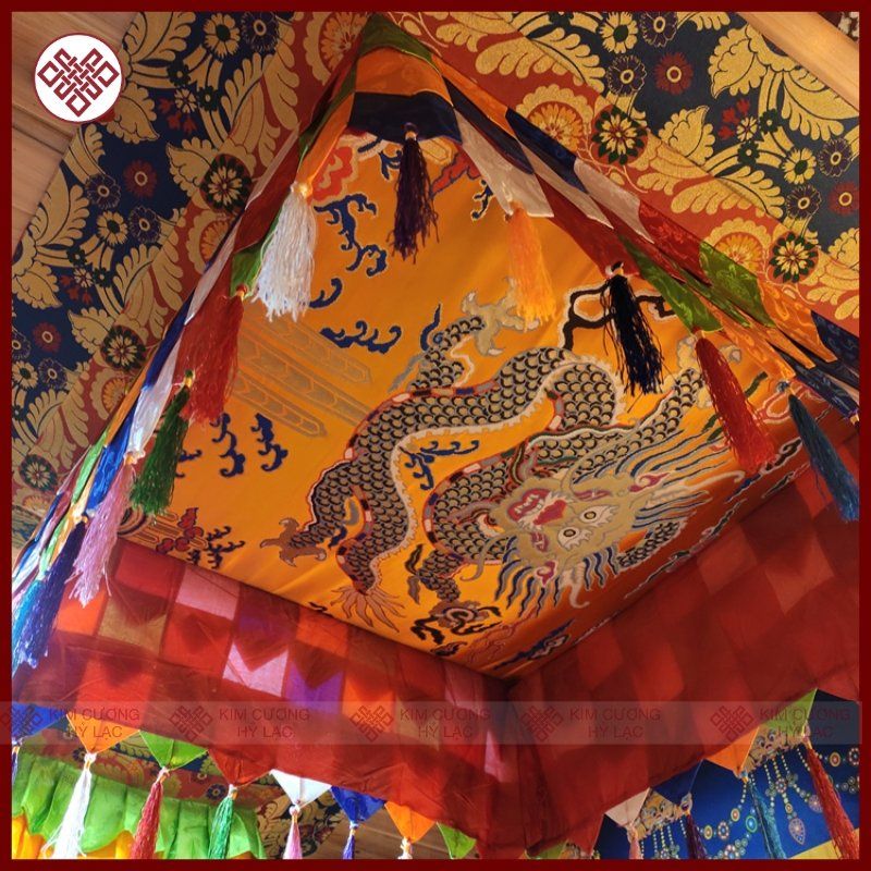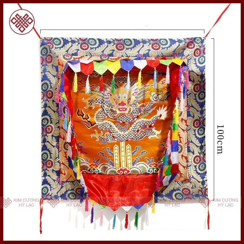 Lọng - Bảo Cái Vuông Trang Trí Gian Thờ Mật Tông [Kim Cương Hỷ Lạc] Hình Rộng 100X100Cm