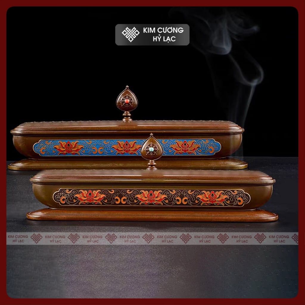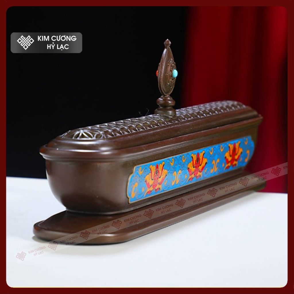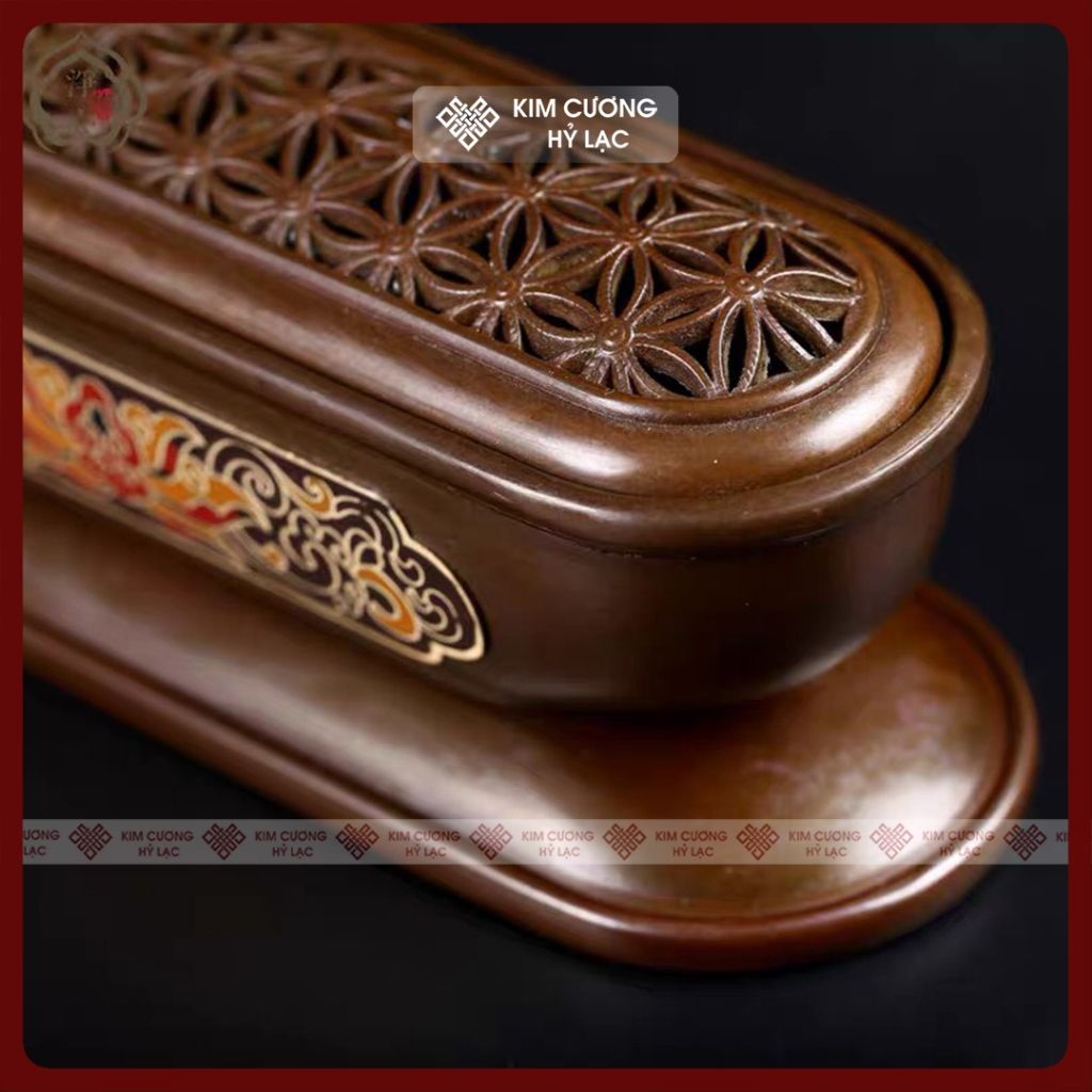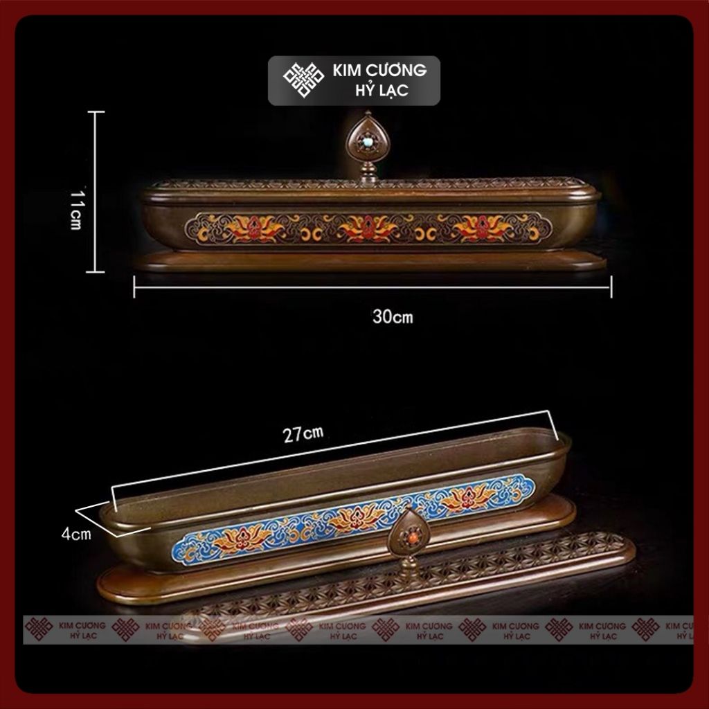 Lư Hương, Lư Xông Trầm Hương [Kim Cương Hỷ Lạc] Lư Đồng Cao Cấp Vẽ Màu Hoa Sen 30x11cm