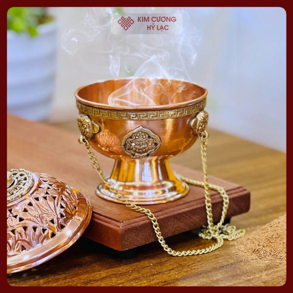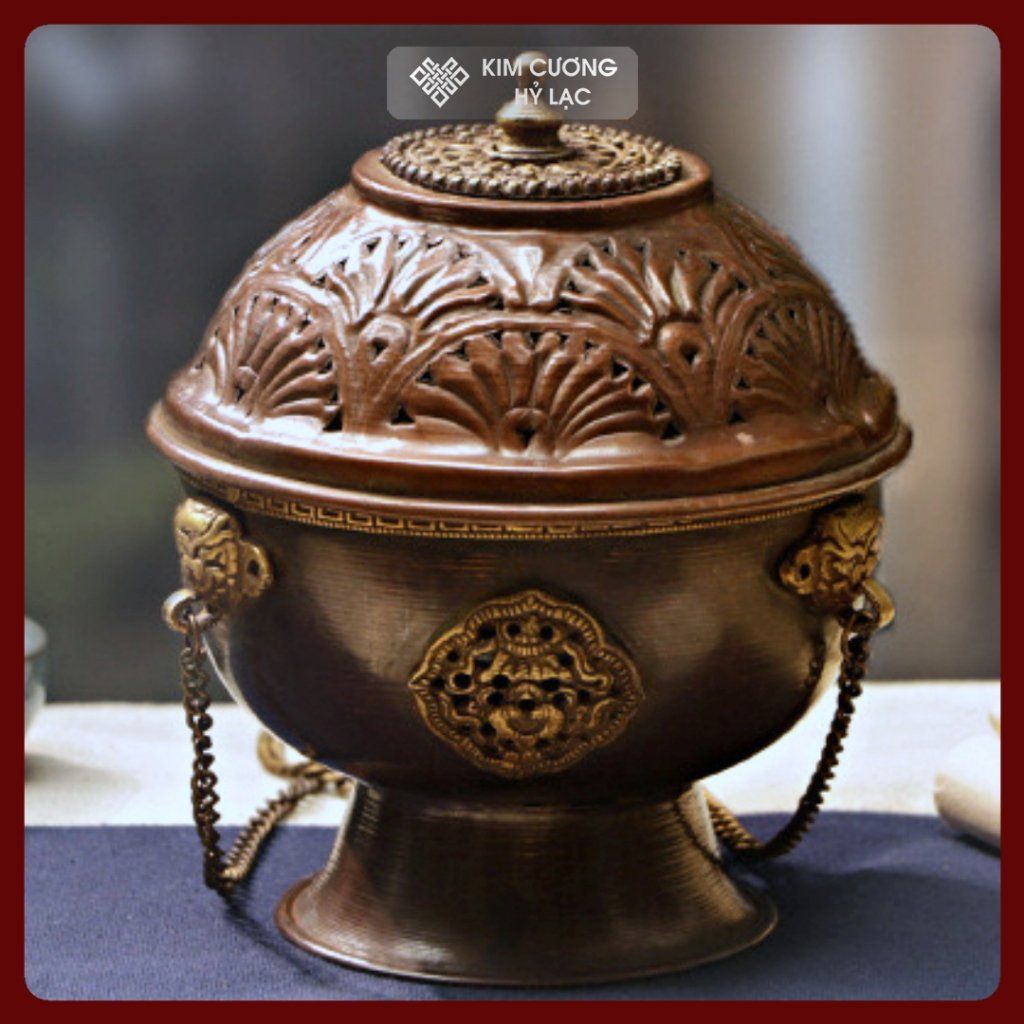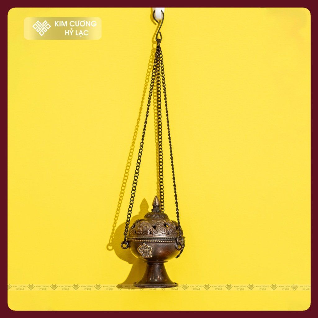 Lư Xông Đồng Có Dây Xích Nepal [Kim Cương Hỷ Lạc] 10x14cm