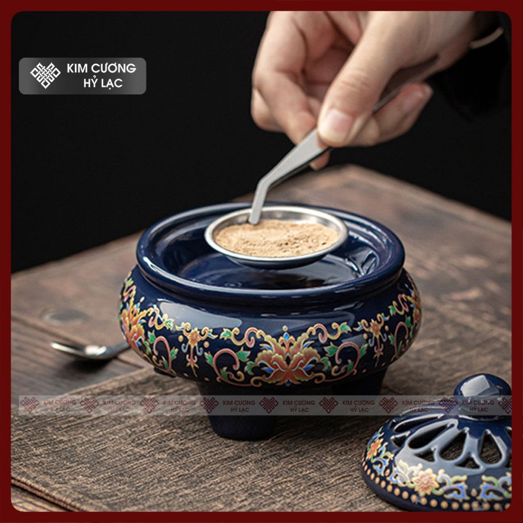 Lư Xông Trầm Bằng Điện, Lư Điện Đốt Trầm Hương [Kim Cương Hỷ Lạc] Chất Liệu Gốm Cao Cấp