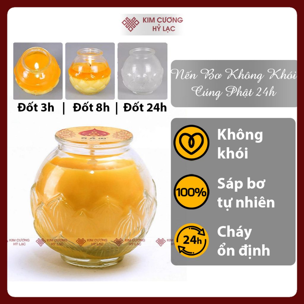 Nến Bơ Thực Vật Không Khói [Kim Cương Hỷ Lạc] - Cháy 24 Giờ