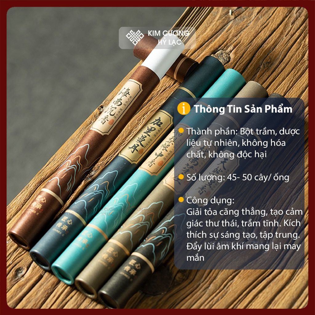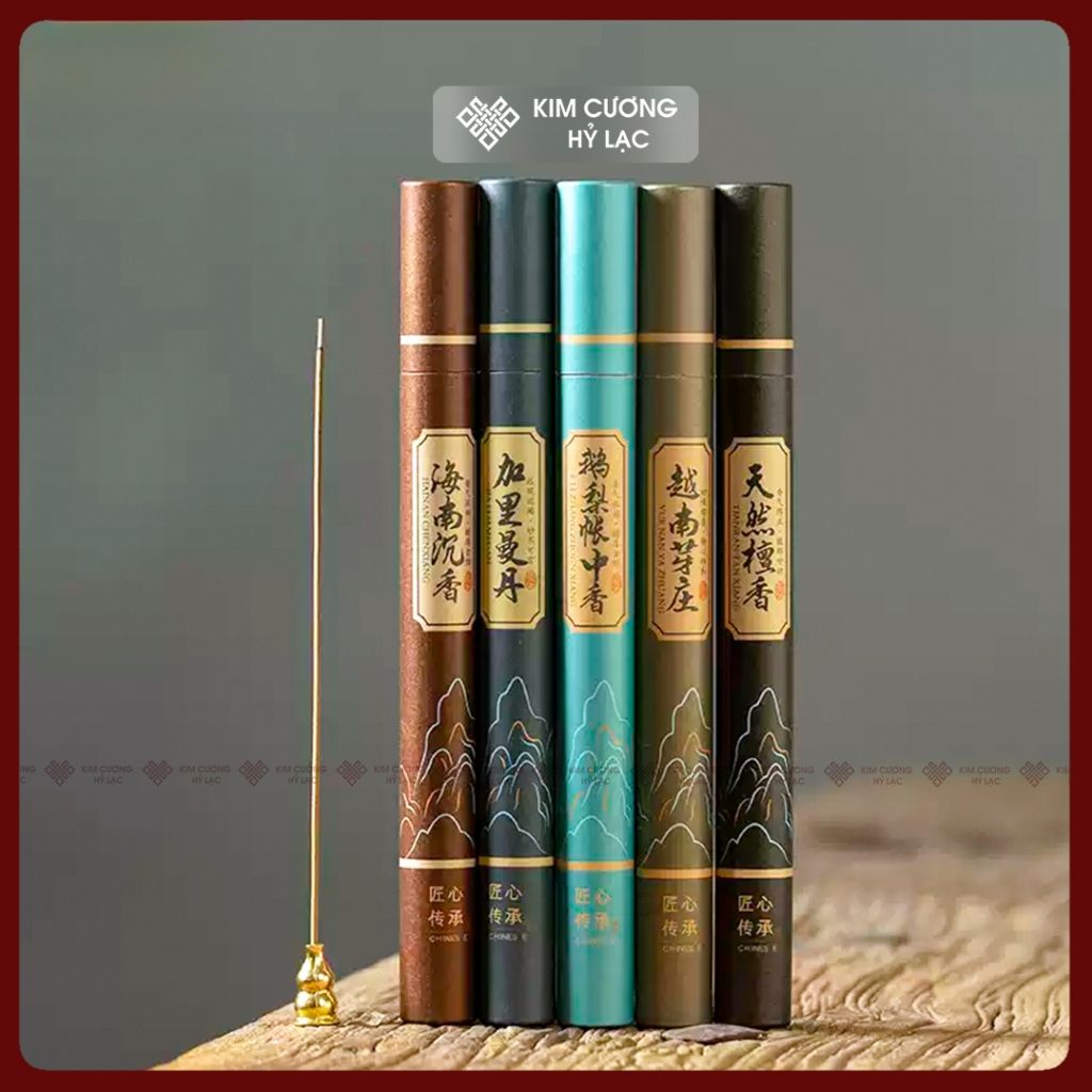 Nhang Trầm Hương Không Tăm [Kim Cương Hỷ Lạc] Bộ 11 Ống Nhang Trầm Hương, Thơm Dịu Nhẹ Tự Nhiên 100%