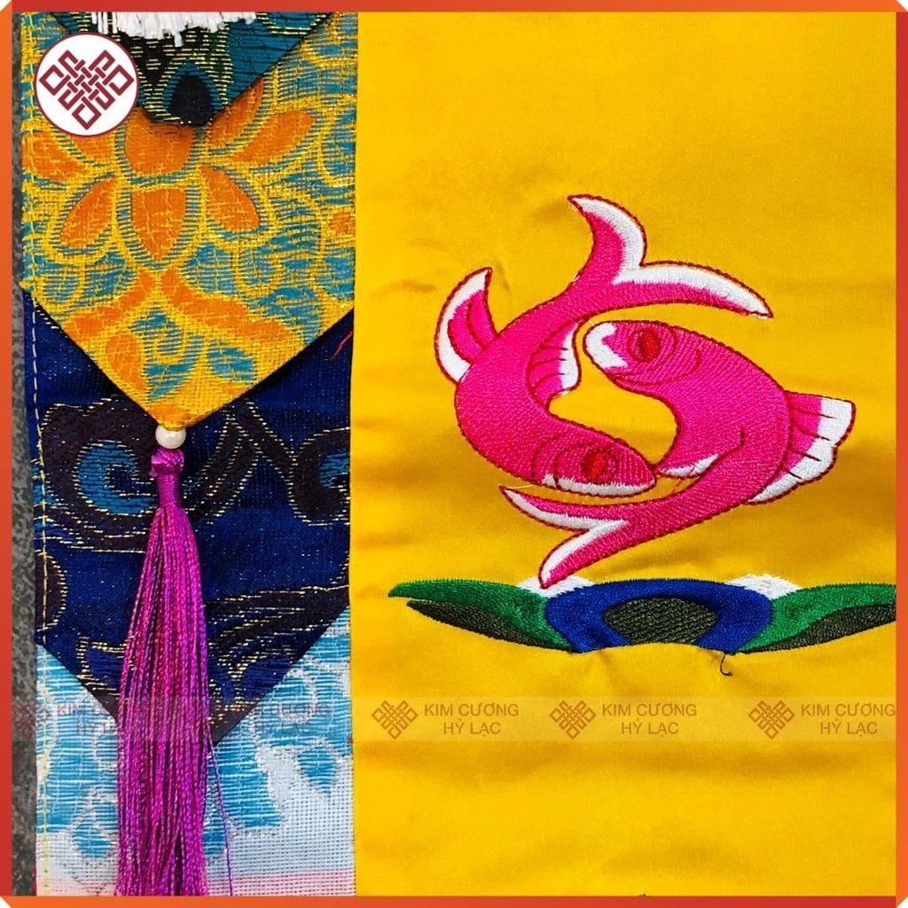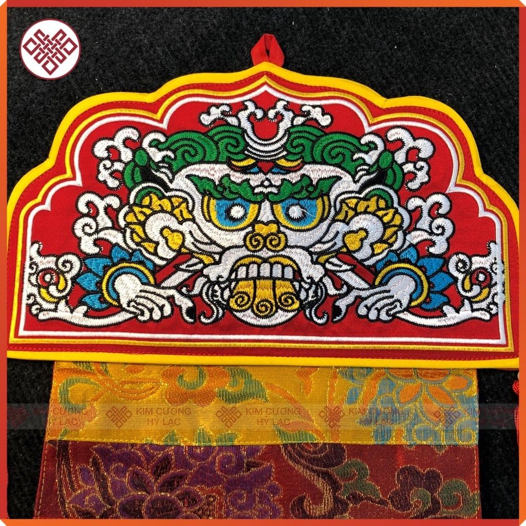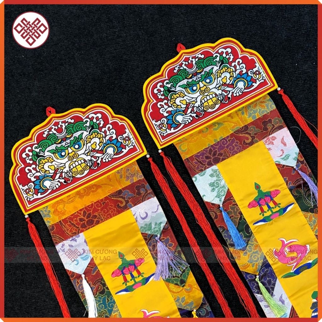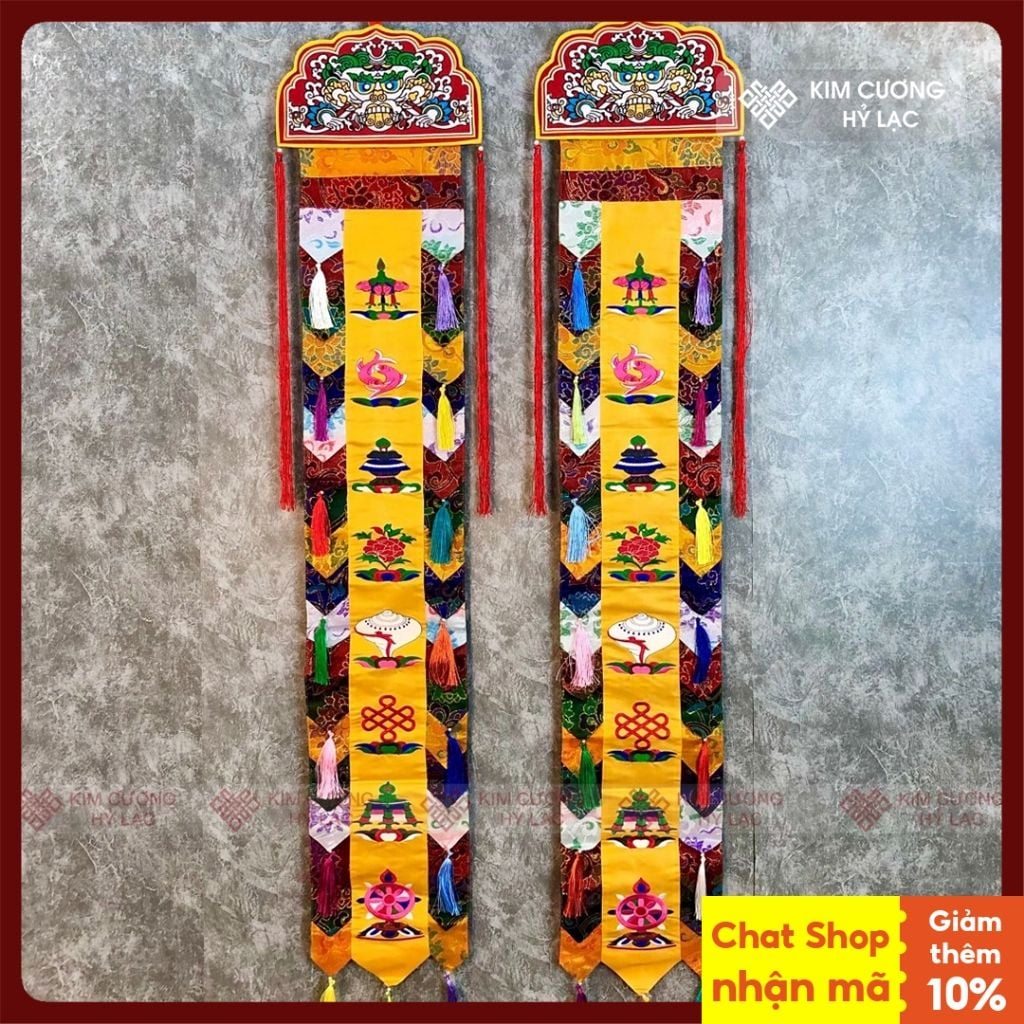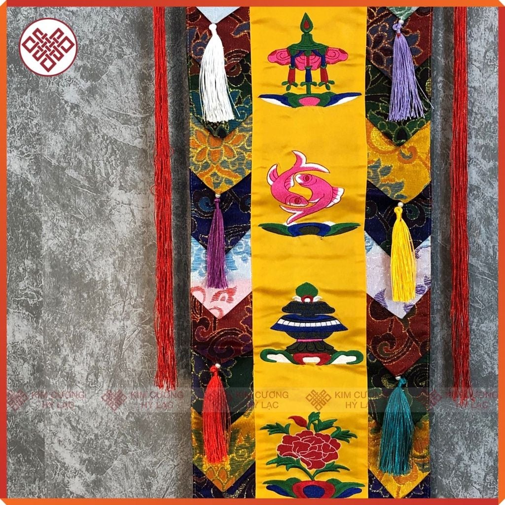 Phướn Bát Cát Tường Mật Tông [Kim Cương Hỷ Lạc] 150x25cm Gấm Lụa