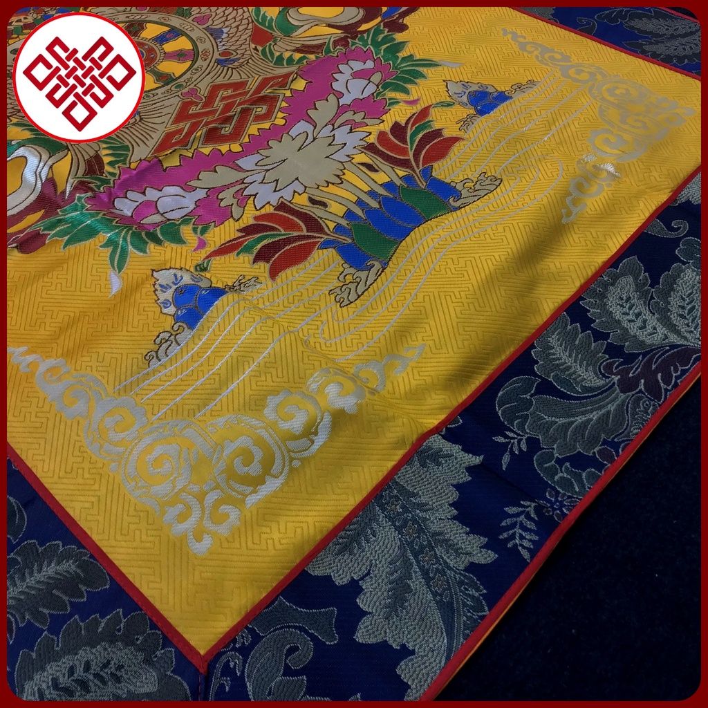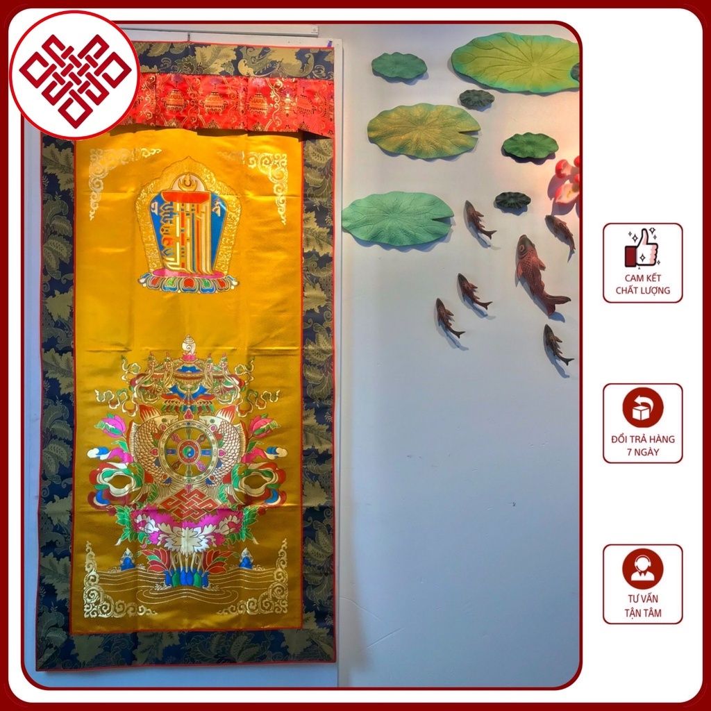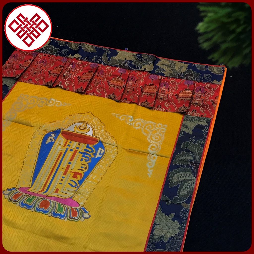 Rèm Cửa Trang Trí Bàn Thờ Mật Tông [Kim Cương Hỷ Lạc] Bát Cát Tường - Kalachakra Nền Vàng