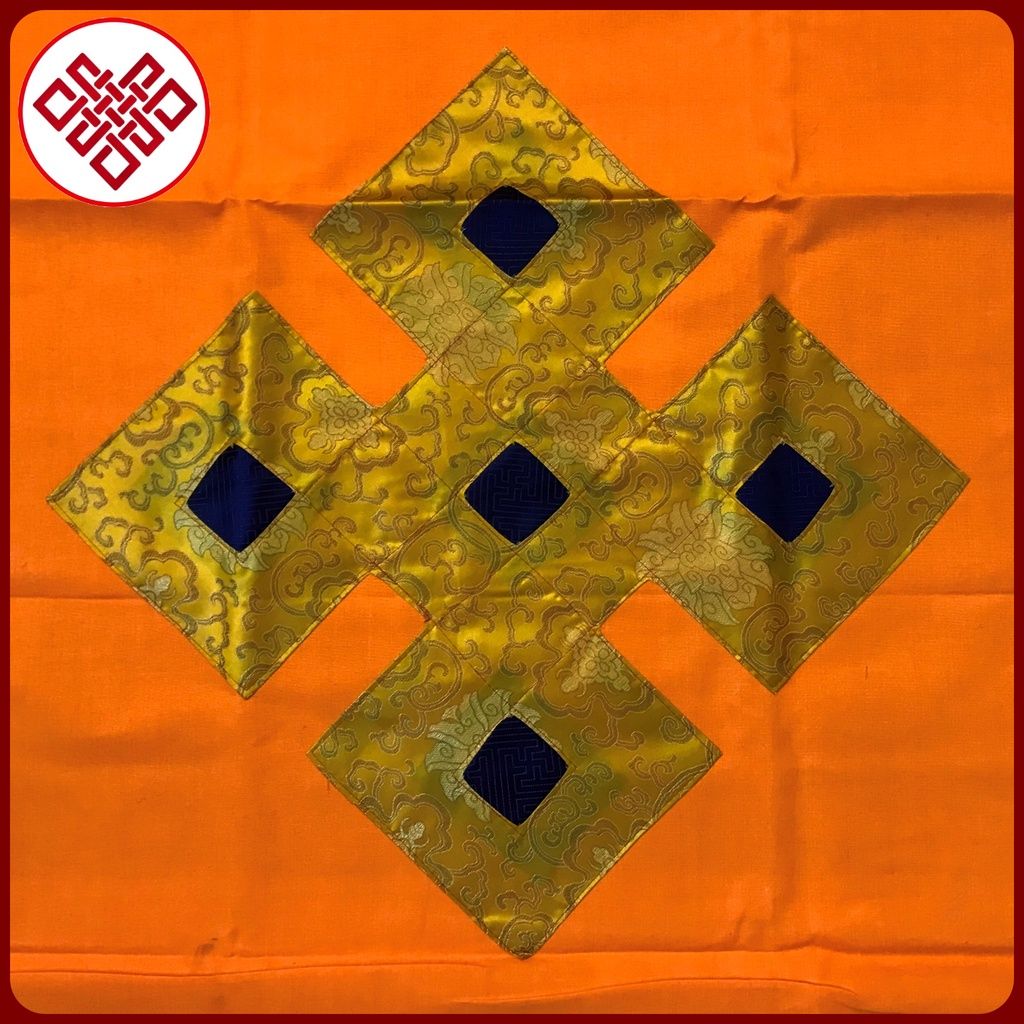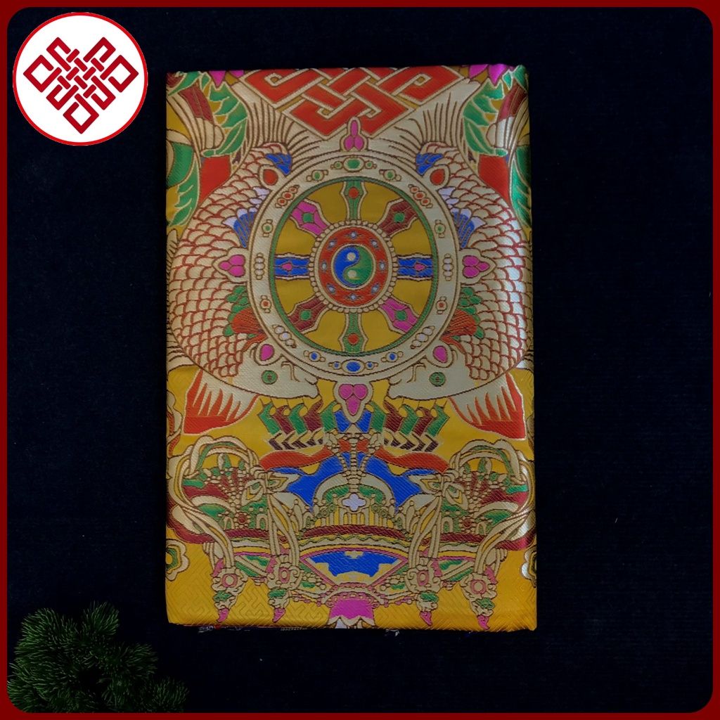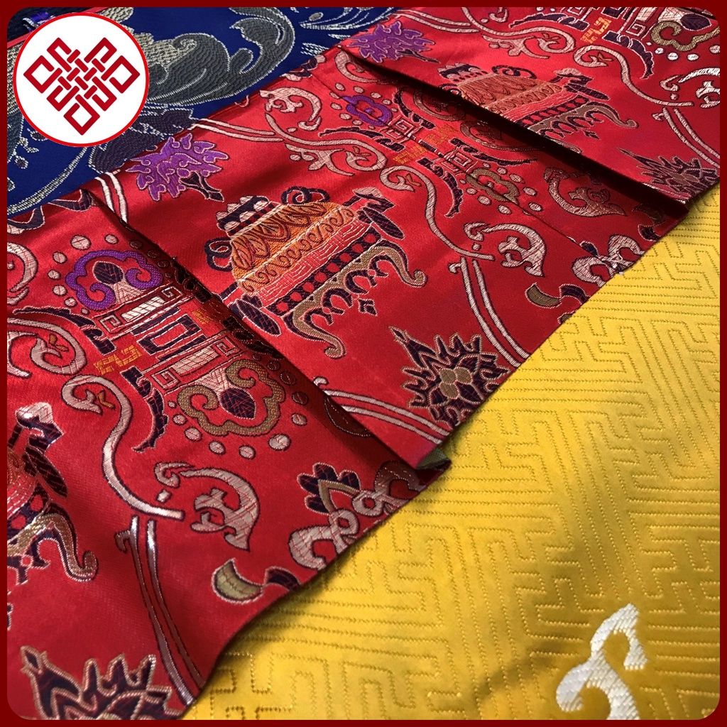 Rèm Cửa Trang Trí Bàn Thờ Mật Tông [Kim Cương Hỷ Lạc] Bát Cát Tường - Kalachakra Nền Vàng