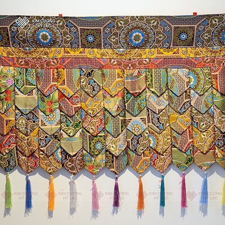 Rèm Quây 5 Tầng Trang Trí Bàn Thờ Mật Tông [Kim Cương Hỷ Lạc] Gấm