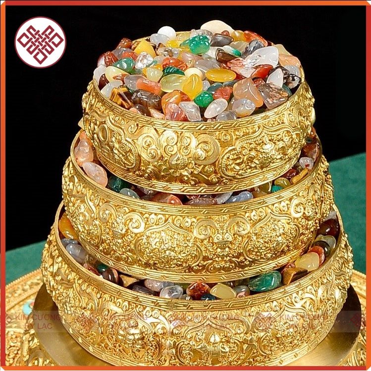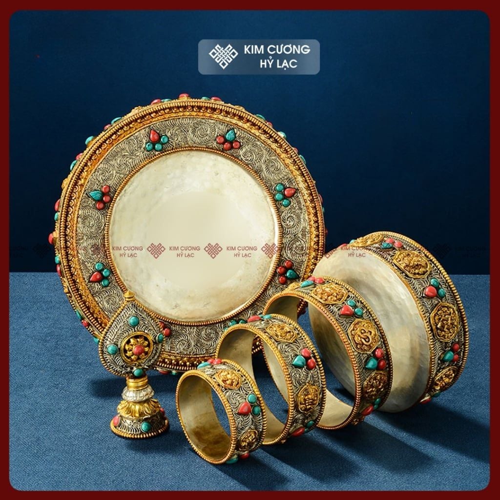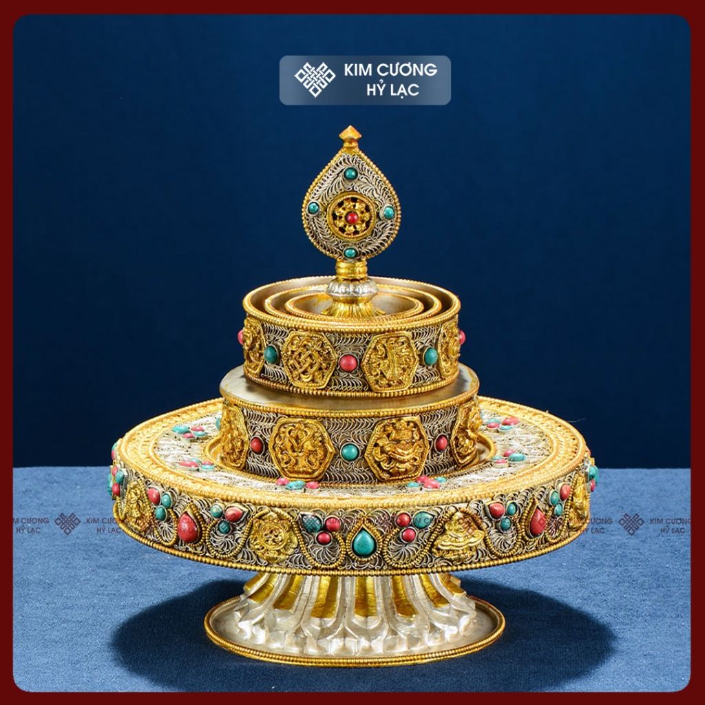 Tháp Mandala Mật Tông [Kim Cương Hỷ Lạc] Đồng Cẩn Đá Cao Cấp 24Cm