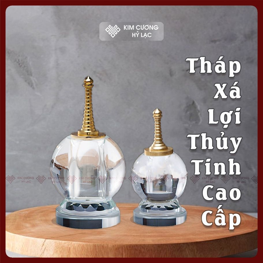 Tháp Xá Lợi Hợp Kim Thủy Tinh Cao Cấp [Kim Cương Hỷ Lạc] Độ Trong Suốt Cao Kích Thước Nhỏ Gọn