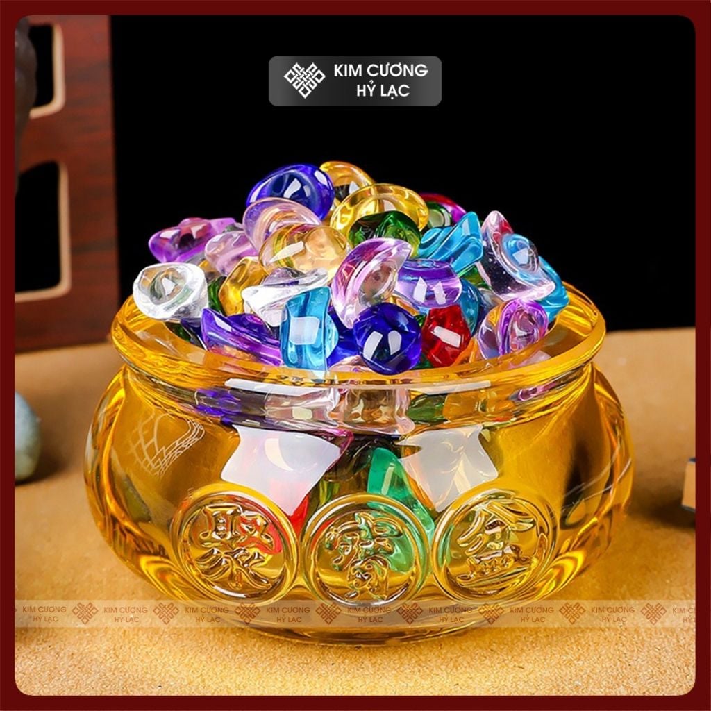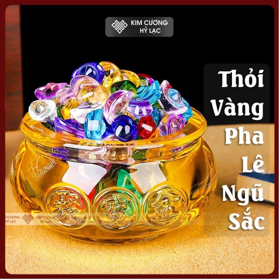 Thỏi Vàng Tài Lộc Thần Tài [Kim Cương Hỷ Lạc] Thỏi Vàng Pha Lê Ngũ Sắc- Thu Hút Tài Lộc May Mắn