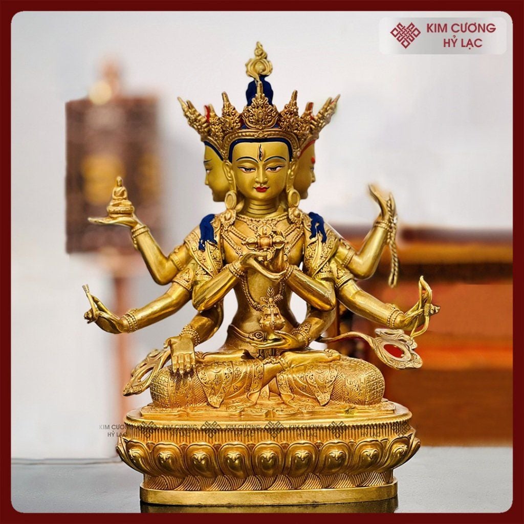 Tôn Tượng Phật Đảnh Tôn Thắng Đài Loan [Kim Cương Hỷ Lạc] Đồng Mạ Vàng Đài Loan 32Cm