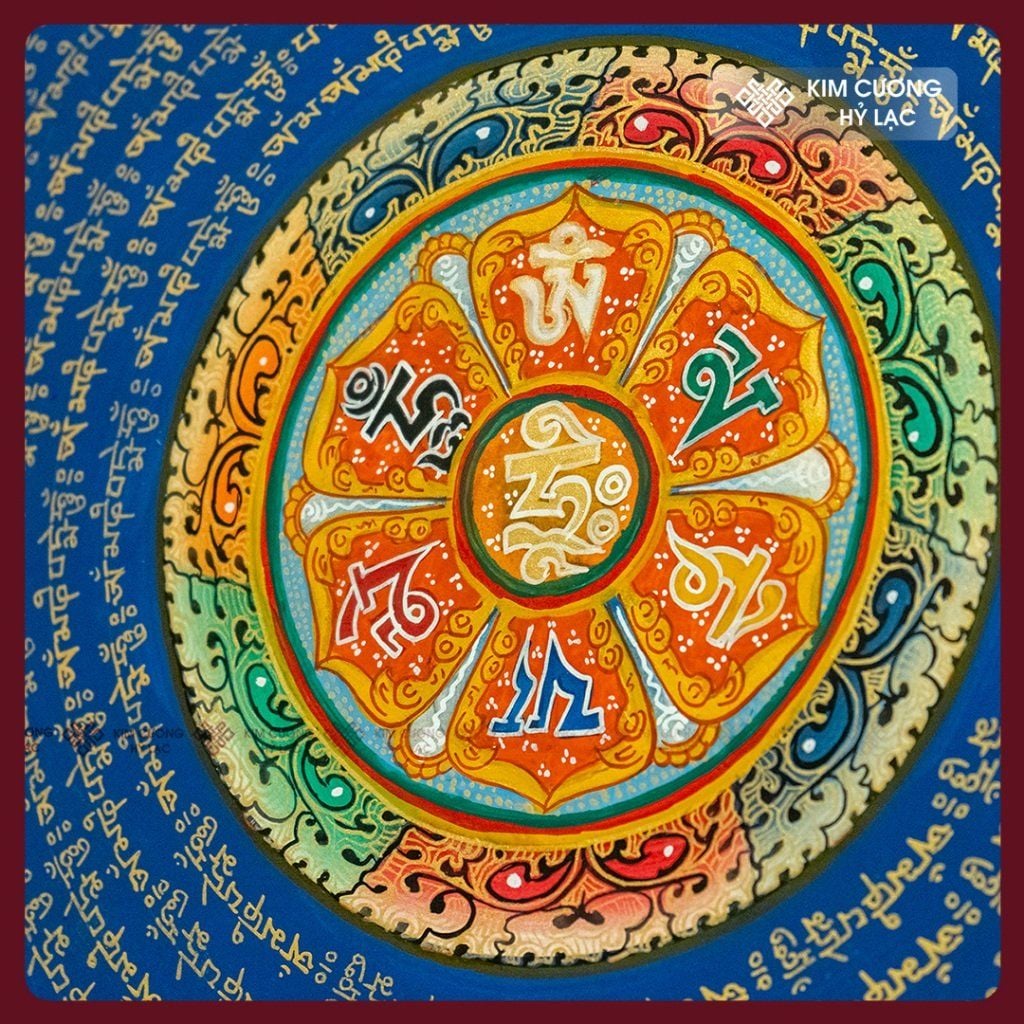 Tranh Mandala Vẽ Tay Nepal, Tranh Mandala 50x50cm [Kim Cương Hỷ Lạc] Tranh Phật Giáo Vẽ Tay Nepal