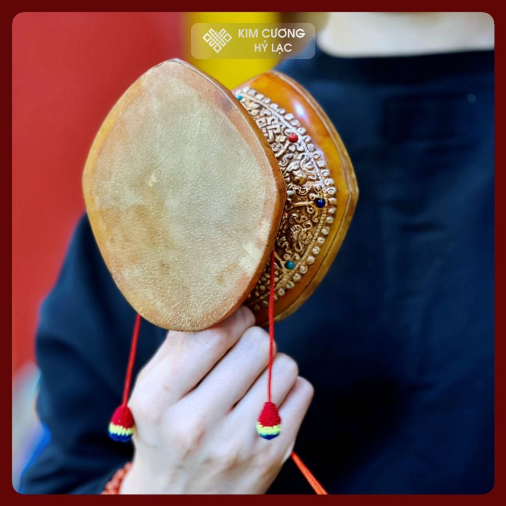 Trống Damaru Mật Tông [Kim Cương Hỷ Lạc] Xuất Xứ Nepal 12x7cm