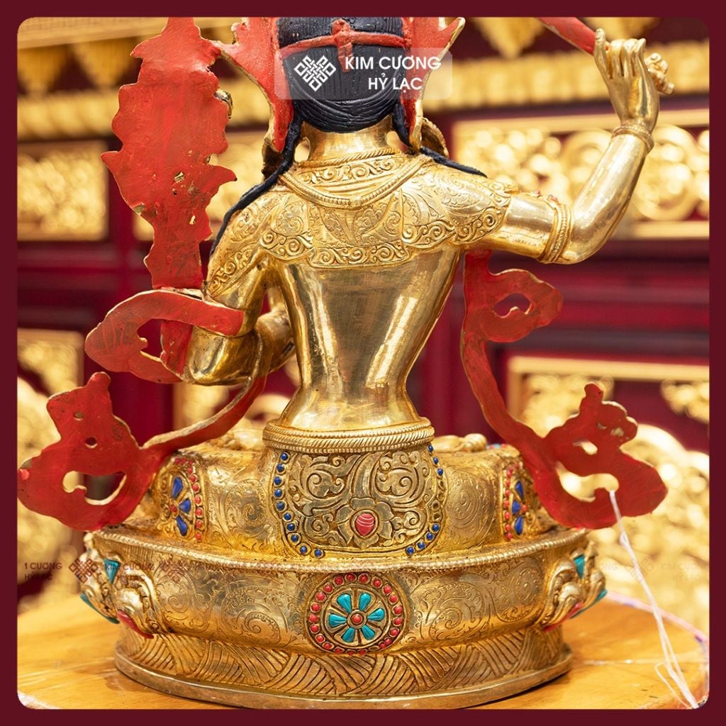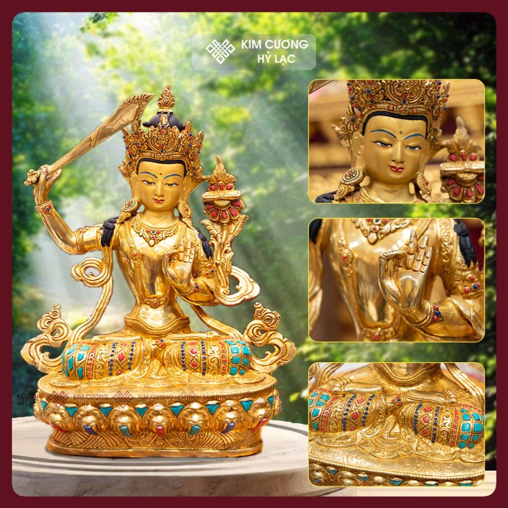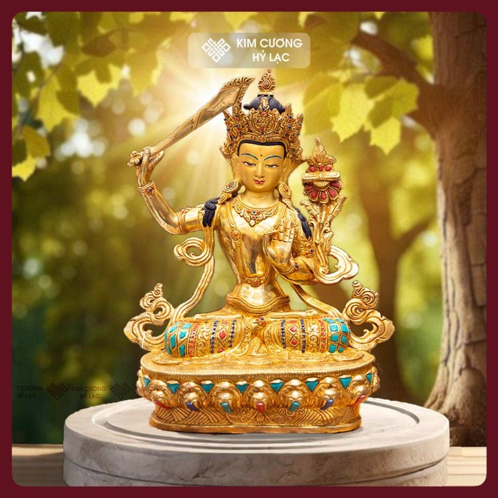 Tượng Bồ Tát Văn Thù Sư Lợi Nepal 34cm [Kim Cương Hỷ Lạc] - Tượng Phật Đồng Mạ Vàng Nepal - Hiếm Có
