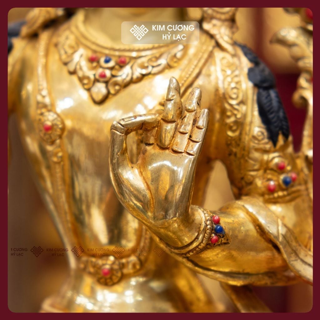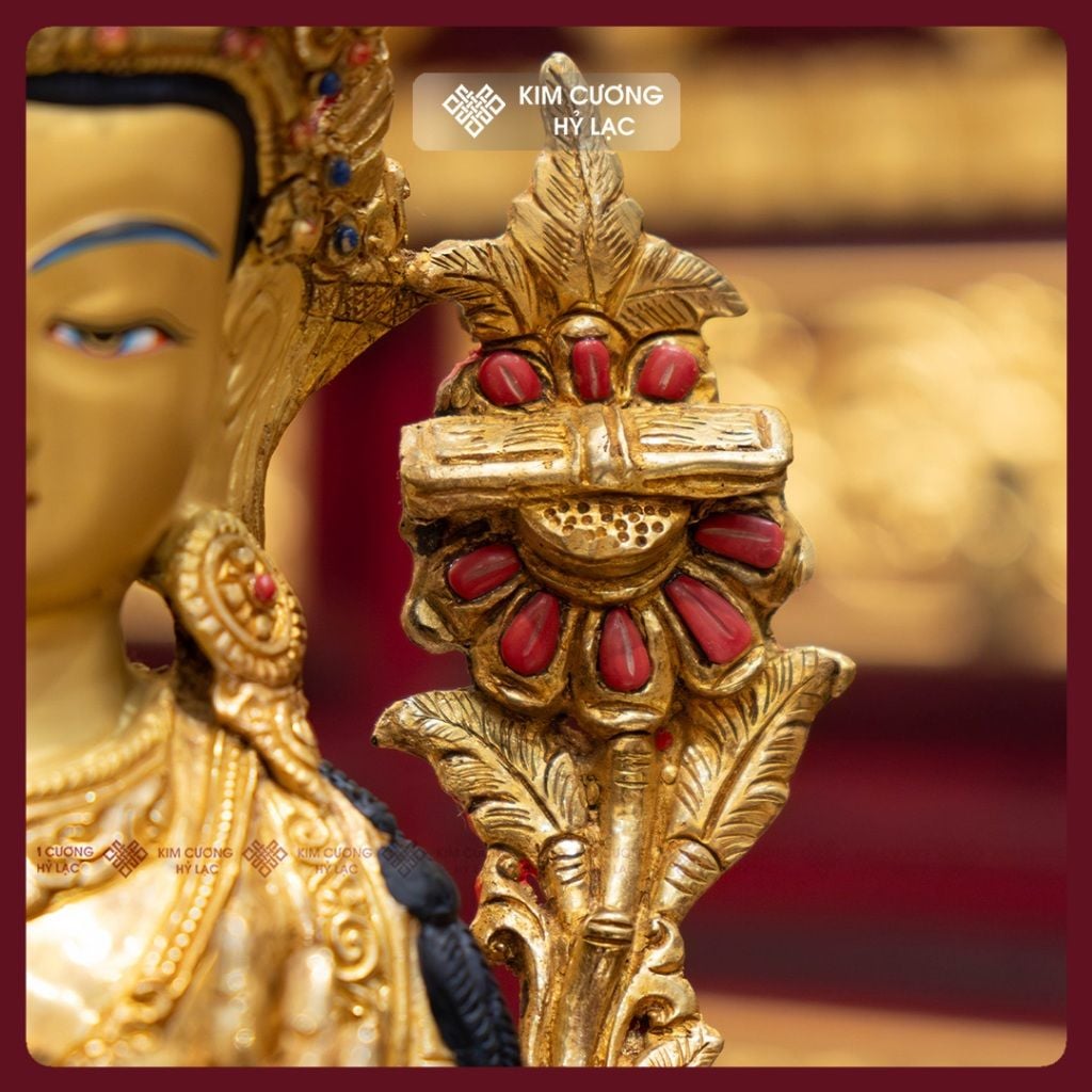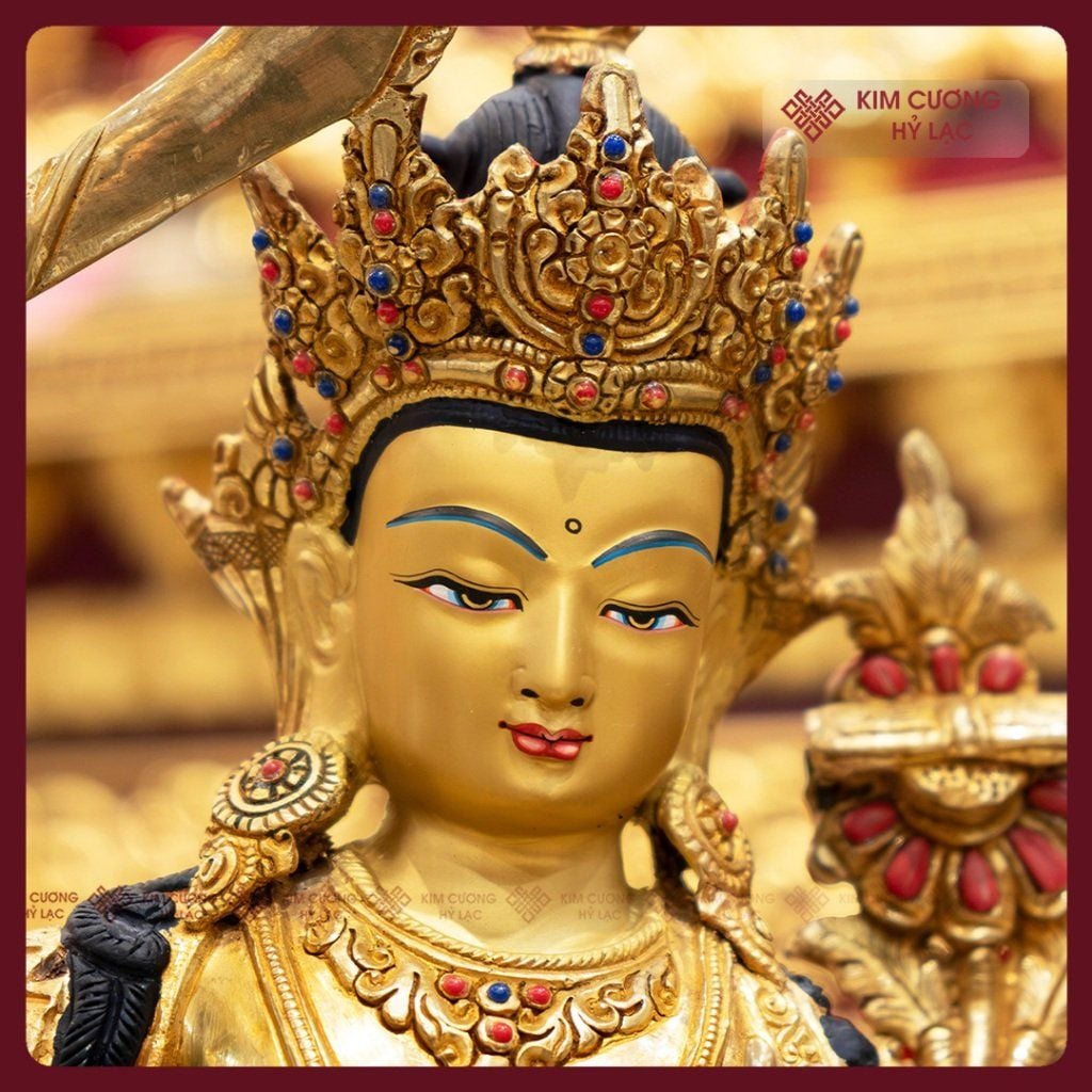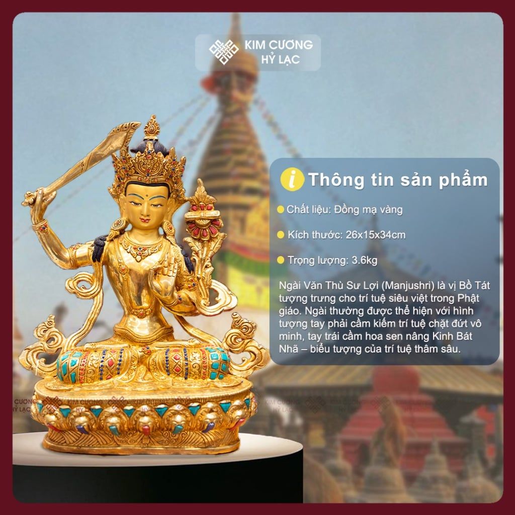 Tượng Bồ Tát Văn Thù Sư Lợi Nepal 34cm [Kim Cương Hỷ Lạc] - Tượng Phật Đồng Mạ Vàng Nepal - Hiếm Có