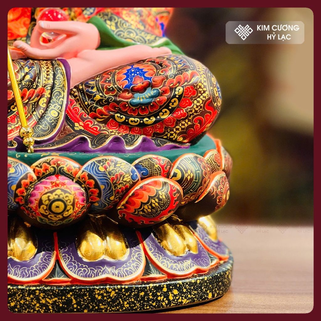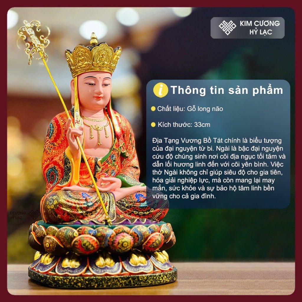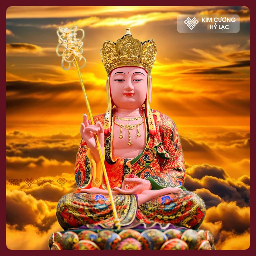 Tượng Địa Tạng Bồ Tát Vẽ Màu Thủ Công [Kim Cương Hỷ Lạc] Tượng Gỗ Long Não Vẽ Lụa Cao Cấp